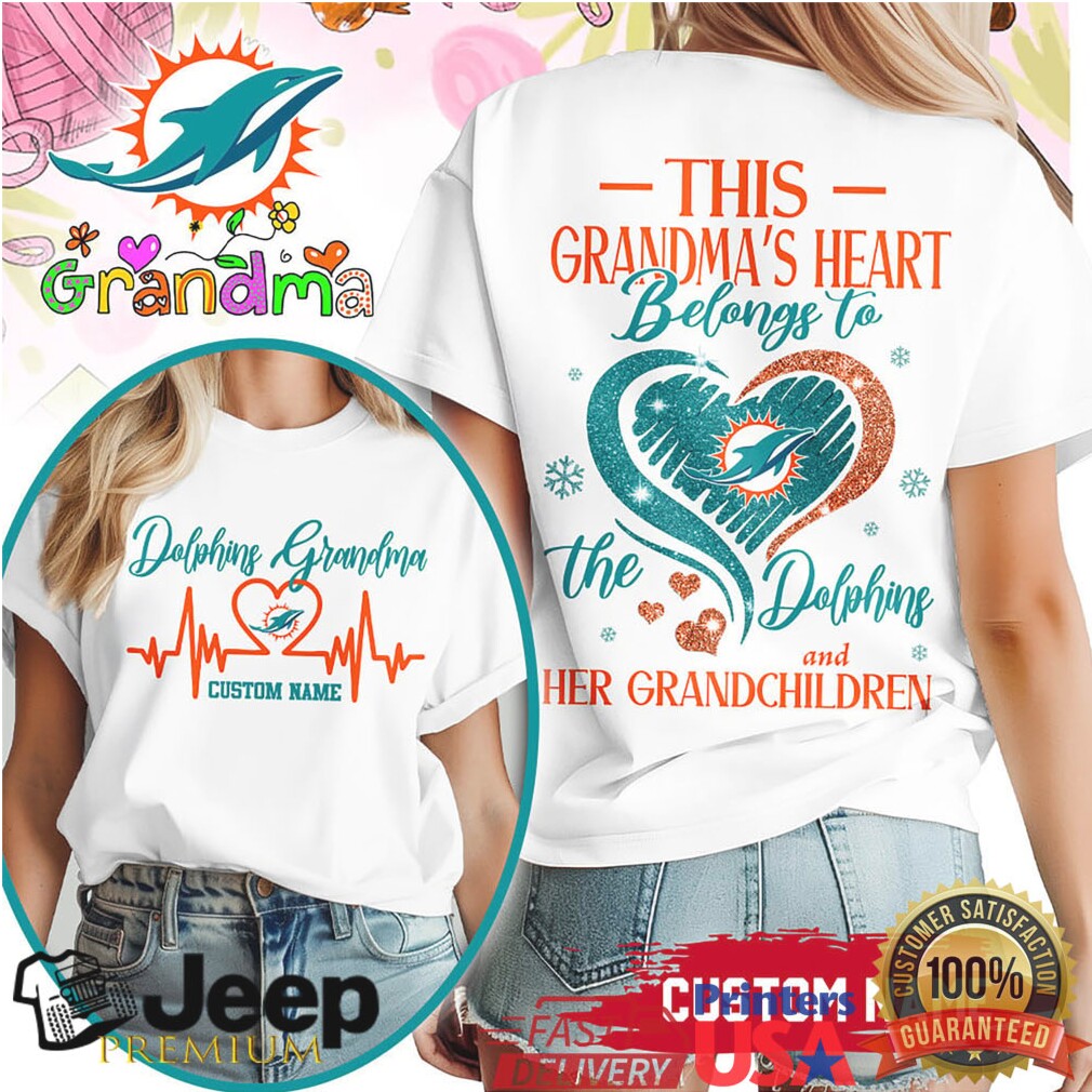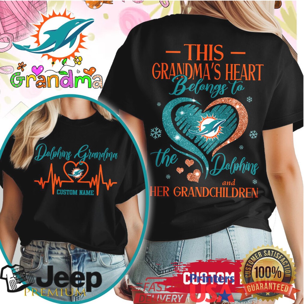 π About Custom Miami Dolphins Grandma Heart T Shirt This Grandma's Heart Belongs To