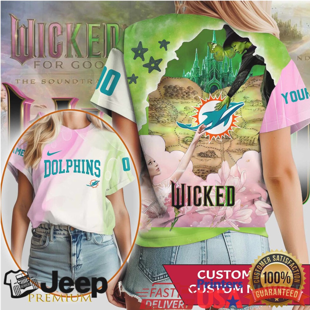 (Custom Name Miami Dolphins Wicked Movie Mashup T Shirt Elphaba & Glinda Design)Custom Name Miami Dolphins Wicked Movie Mashup T Shirt Elphaba & Glinda Design, Treat yourself or make a great gift for your loved ones