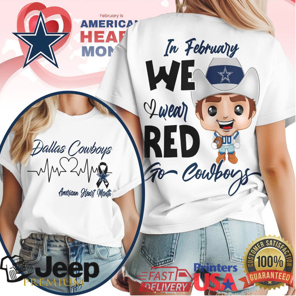 👕 About Dallas Cowboys Heart Awareness Month T Shirt Chibi Mascot We Wear Red Fan T Shirt