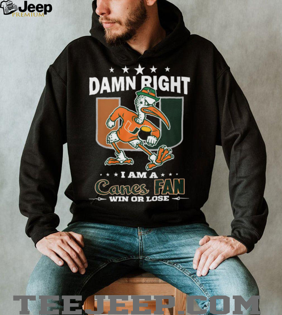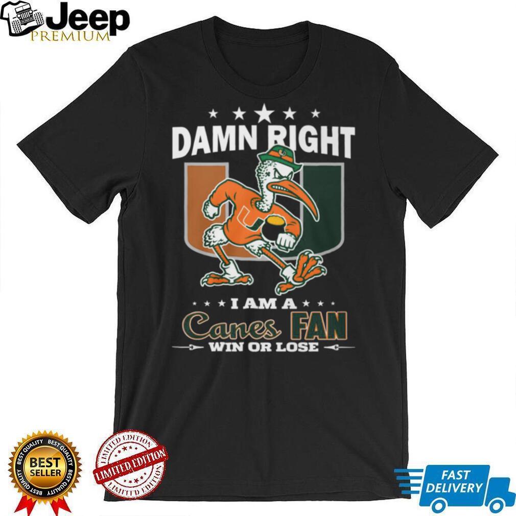 ()Damn Right I Am A Canes Fan Miami Hurricanes Sebastian the Ibis T Shirt, Treat yourself or make a great gift for your loved ones