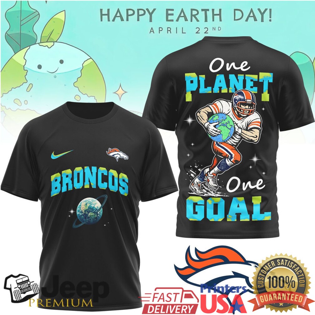 ()Denver Broncos Earth Day One Planet One Goal Football Player Earth Graphic T shirt, Treat yourself or make a great gift for your loved ones