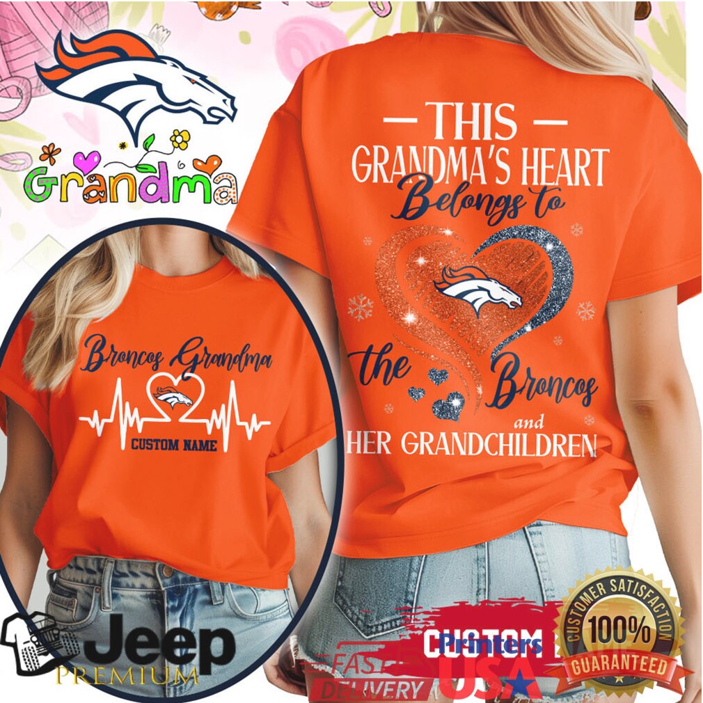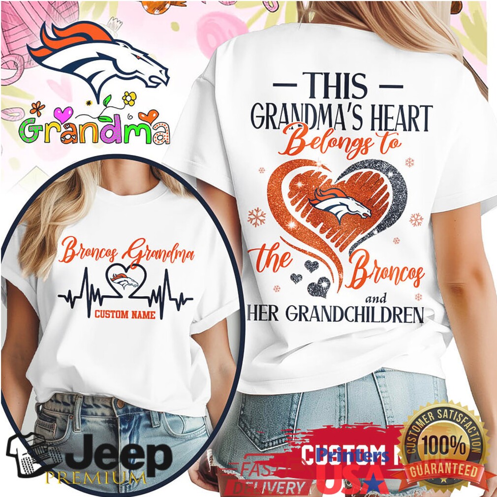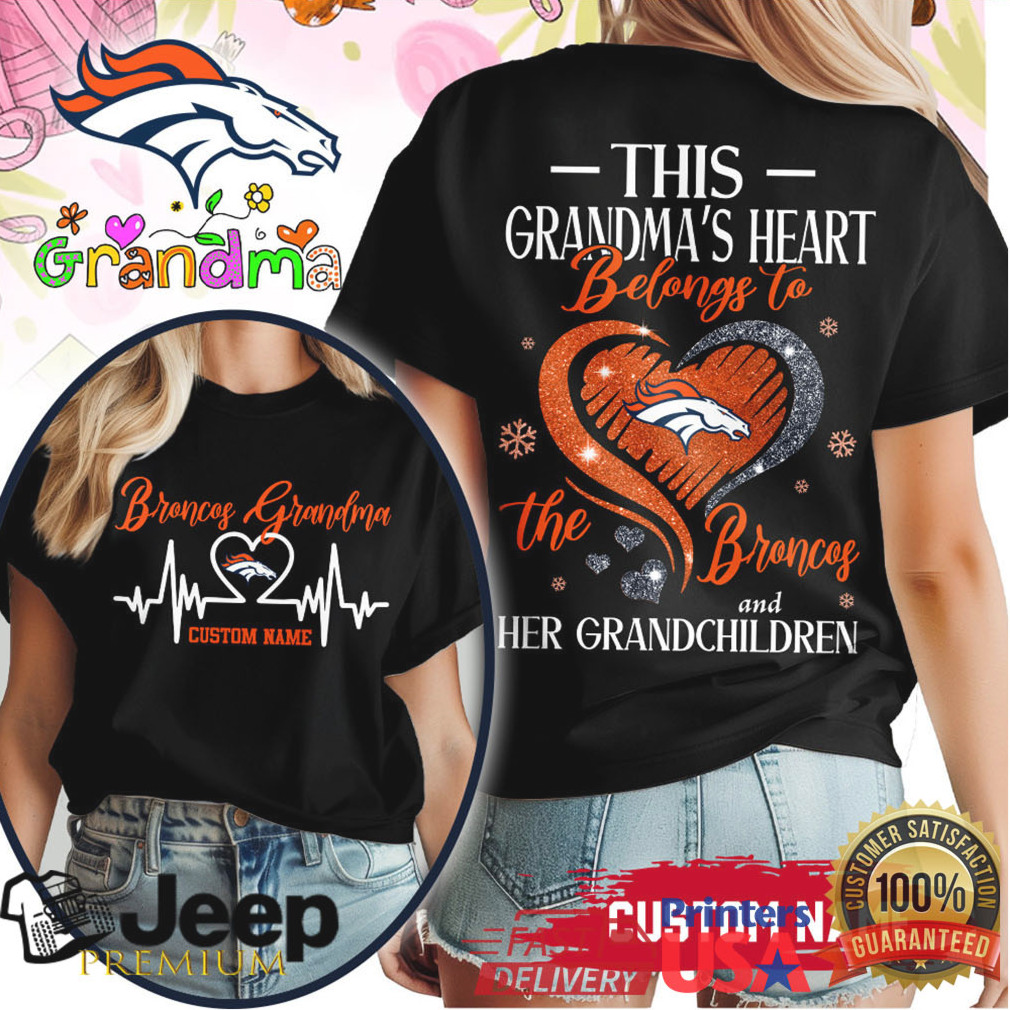 👕 About Denver Broncos Grandma Heart T Shirt Personalized This Grandma's Heart Belongs To