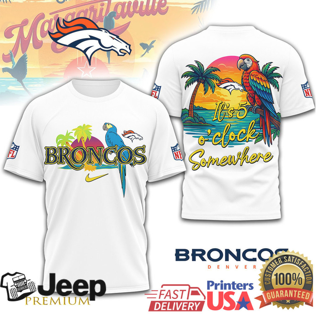()Denver Broncos NFL Summer Tropical Beach Parrot Margaritaville T Shirt, Treat yourself or make a great gift for your loved ones