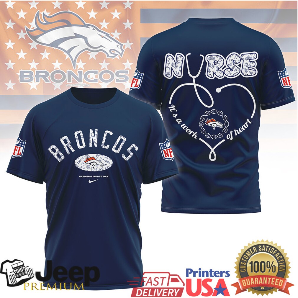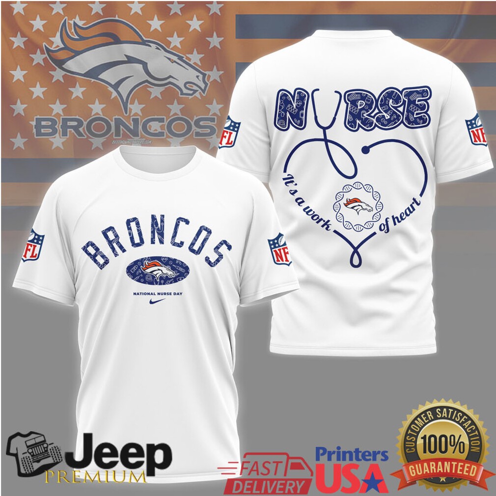 (Denver Broncos Nurse T Shirt It’s A Work Of Heart NFL Stethoscope Design)Denver Broncos Nurse T Shirt It’s A Work Of Heart NFL Stethoscope Design, Treat yourself or make a great gift for your loved ones