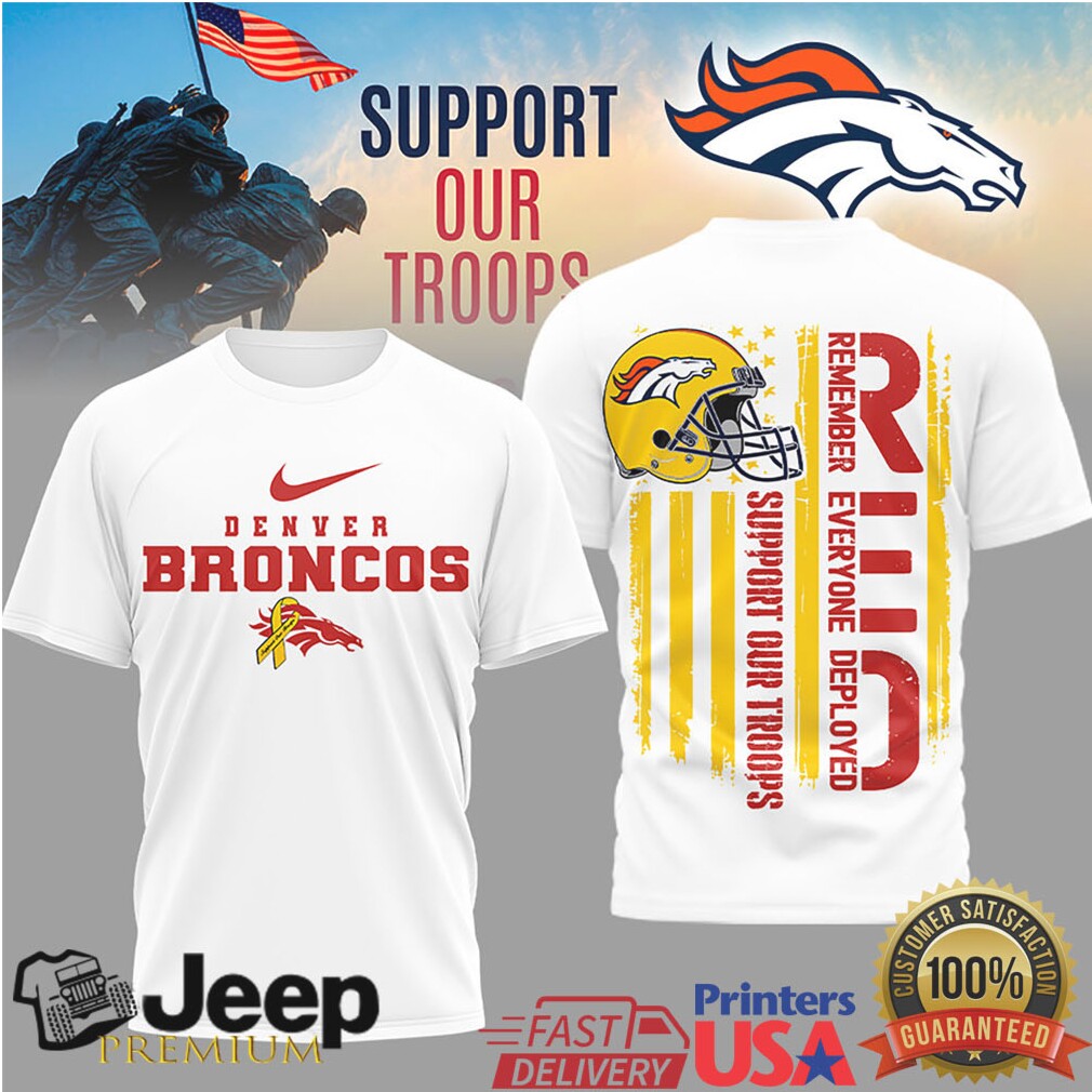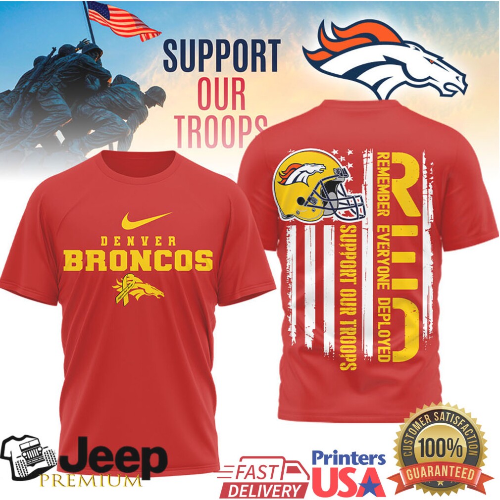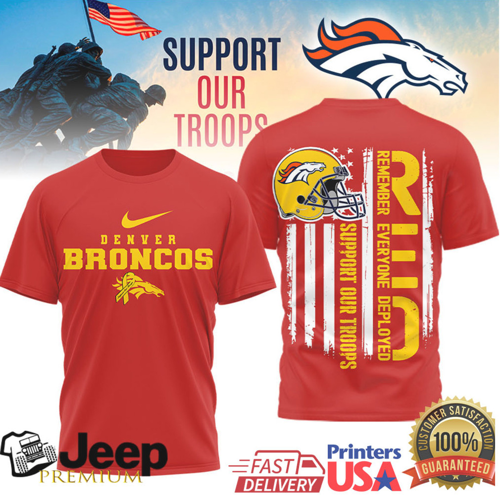 👕 About Denver Broncos RED Support Our Troops Military Appreciation T Shirt