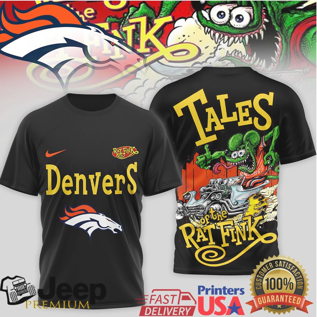 ()Denver Broncos Tales of the Rat Fink Custom Car Culture T Shirt, Treat yourself or make a great gift for your loved ones