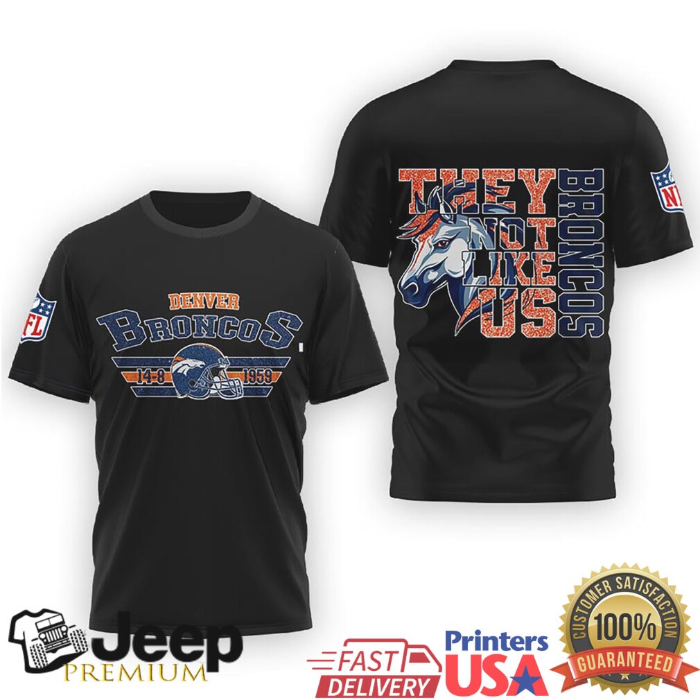 (Denver Broncos “They Not Like Us” Horse Graphic Double Sided T Shirt)Denver Broncos “They Not Like Us” Horse Graphic Double Sided T Shirt, Treat yourself or make a great gift for your loved ones