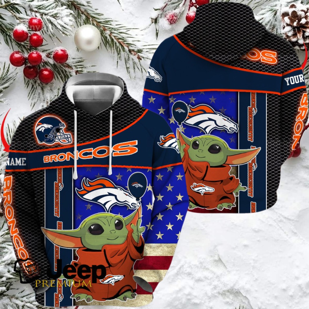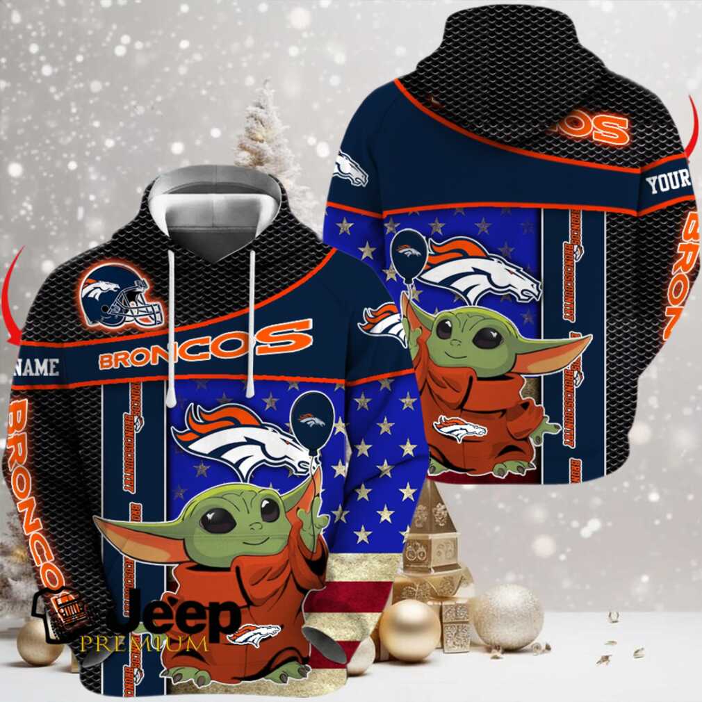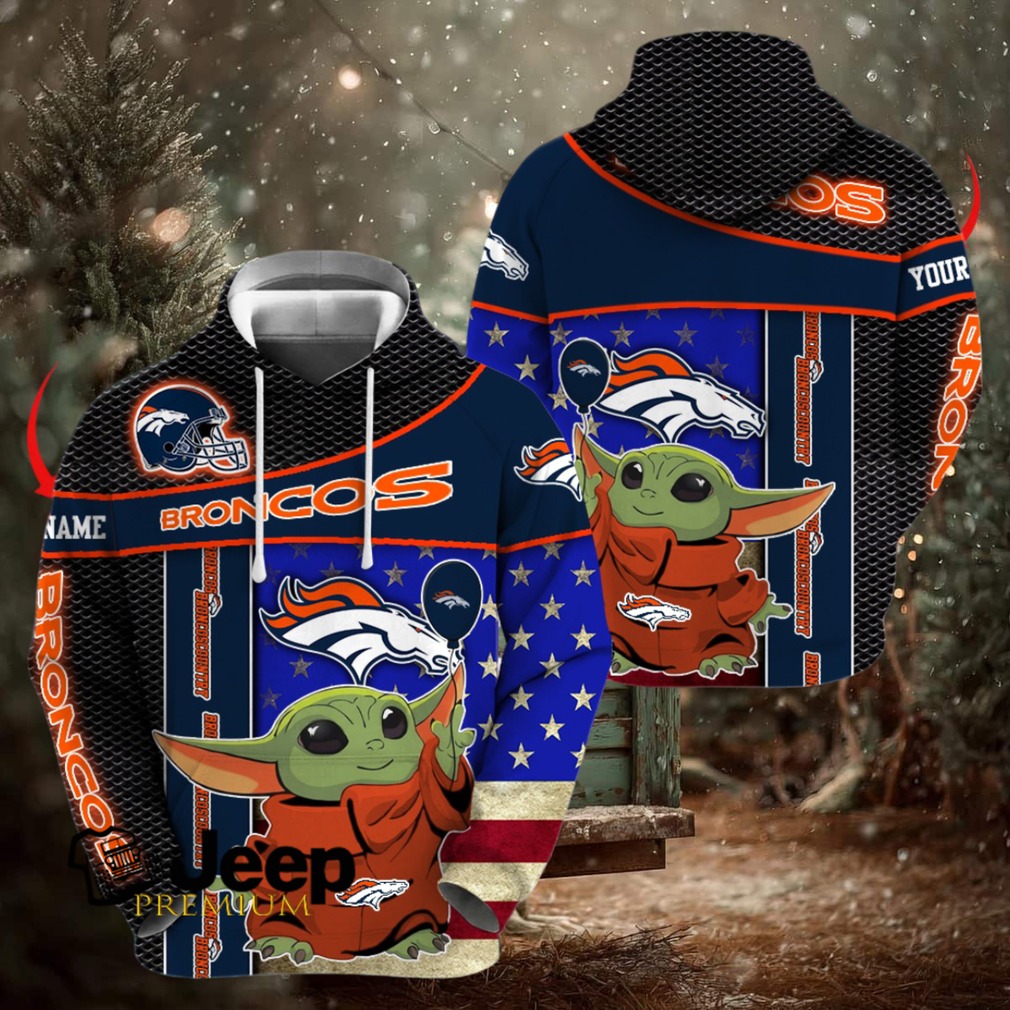 👕 About Denver Broncos x Baby Yoda Holding Baloon Football Hoodie 3D Custom Name