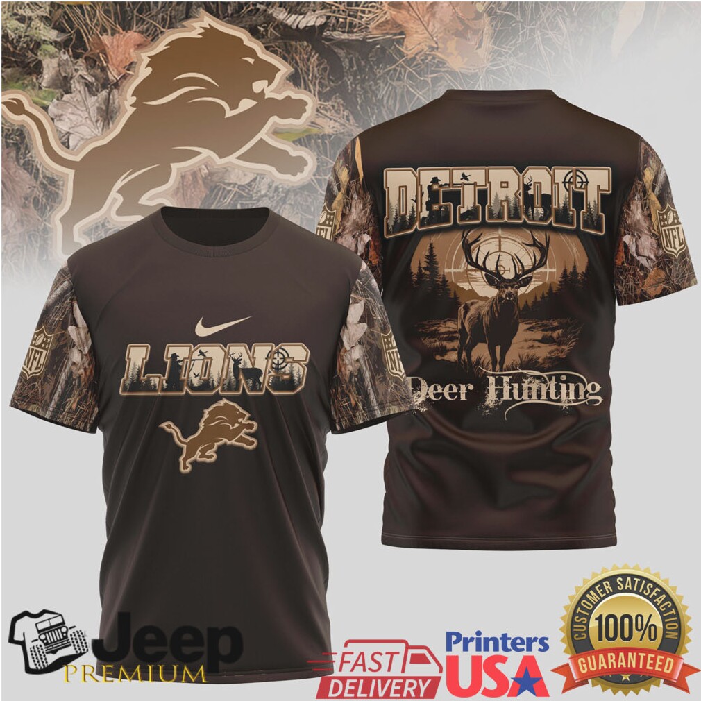 (Detroit Lions Deer Hunting Camo 3D All Over Print T Shirt)