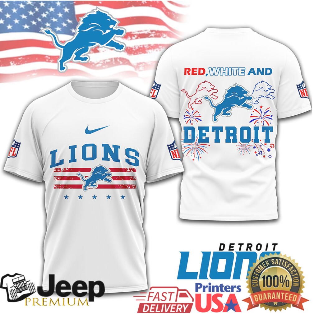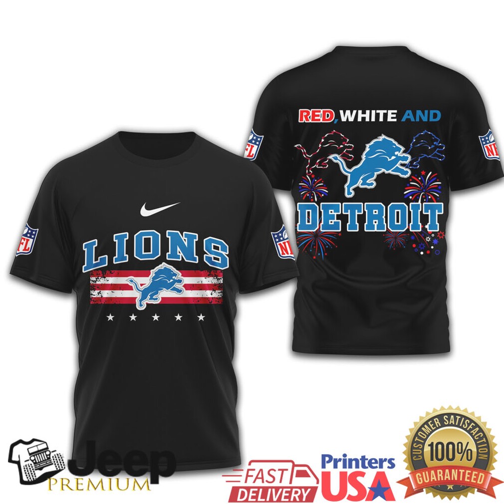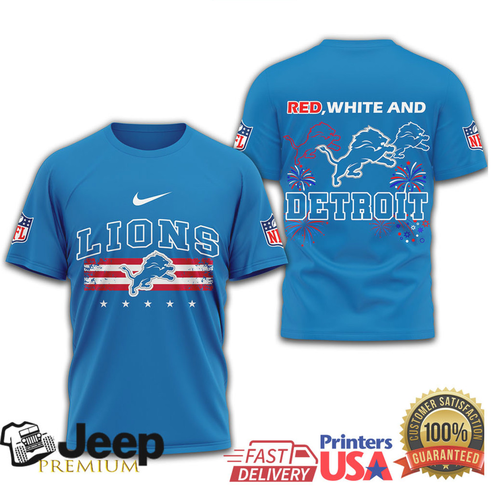 👕 About Detroit Lions NFL Red White and Blue Patriotic Fireworks T Shirt