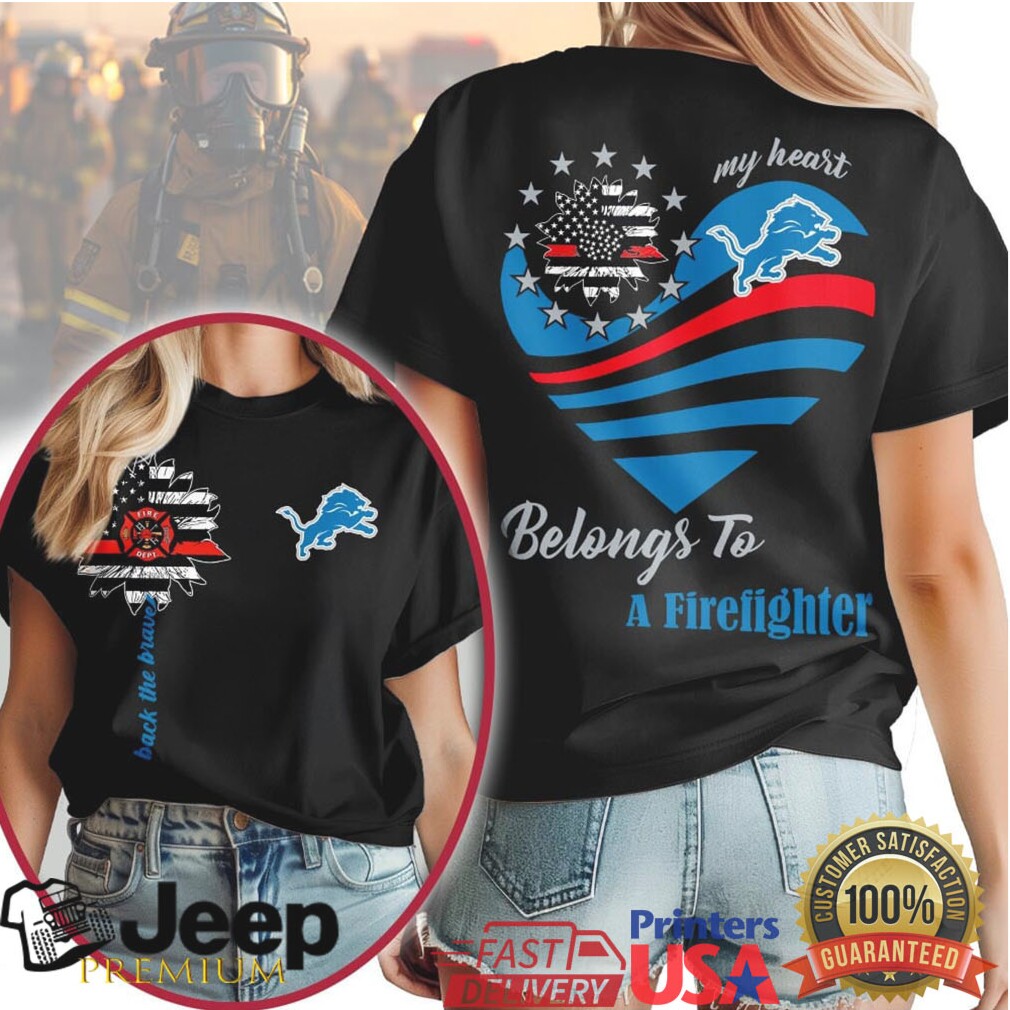 ()Detroit Lions Official NFL My Heart Belongs To A Firefighter T shirt, Treat yourself or make a great gift for your loved ones