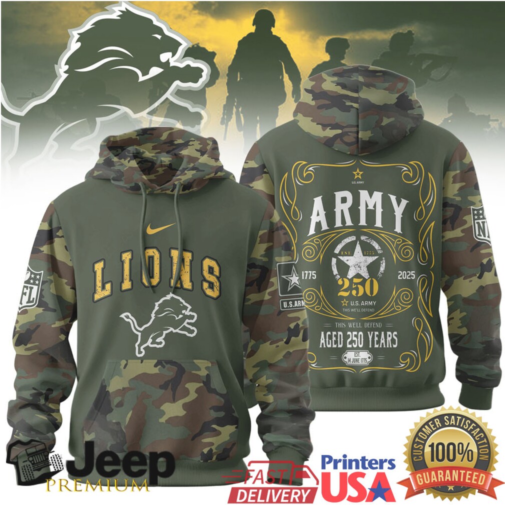 👕 About Detroit Lions Official NFL US Army 250th anniversary 3D Hoodie