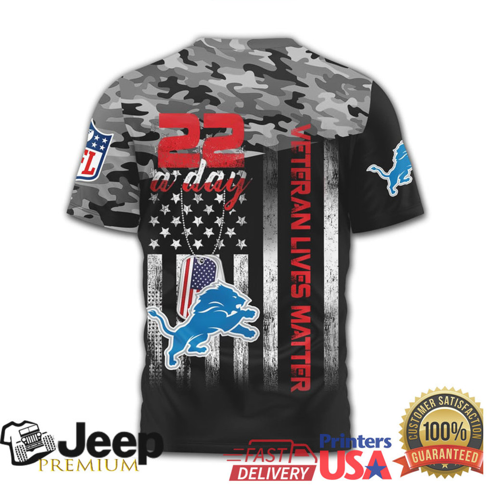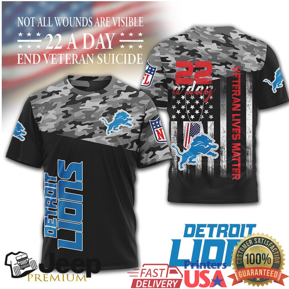 (Detroit Lions Veteran Awareness T Shirt 22 A Day Veteran Lives Matter Camo)