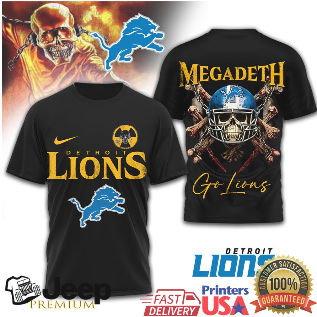 (Detroit Lions x Megadeth Heavy Metal Skull Graphic Tee)Detroit Lions x Megadeth Heavy Metal Skull Graphic Tee, Treat yourself or make a great gift for your loved ones