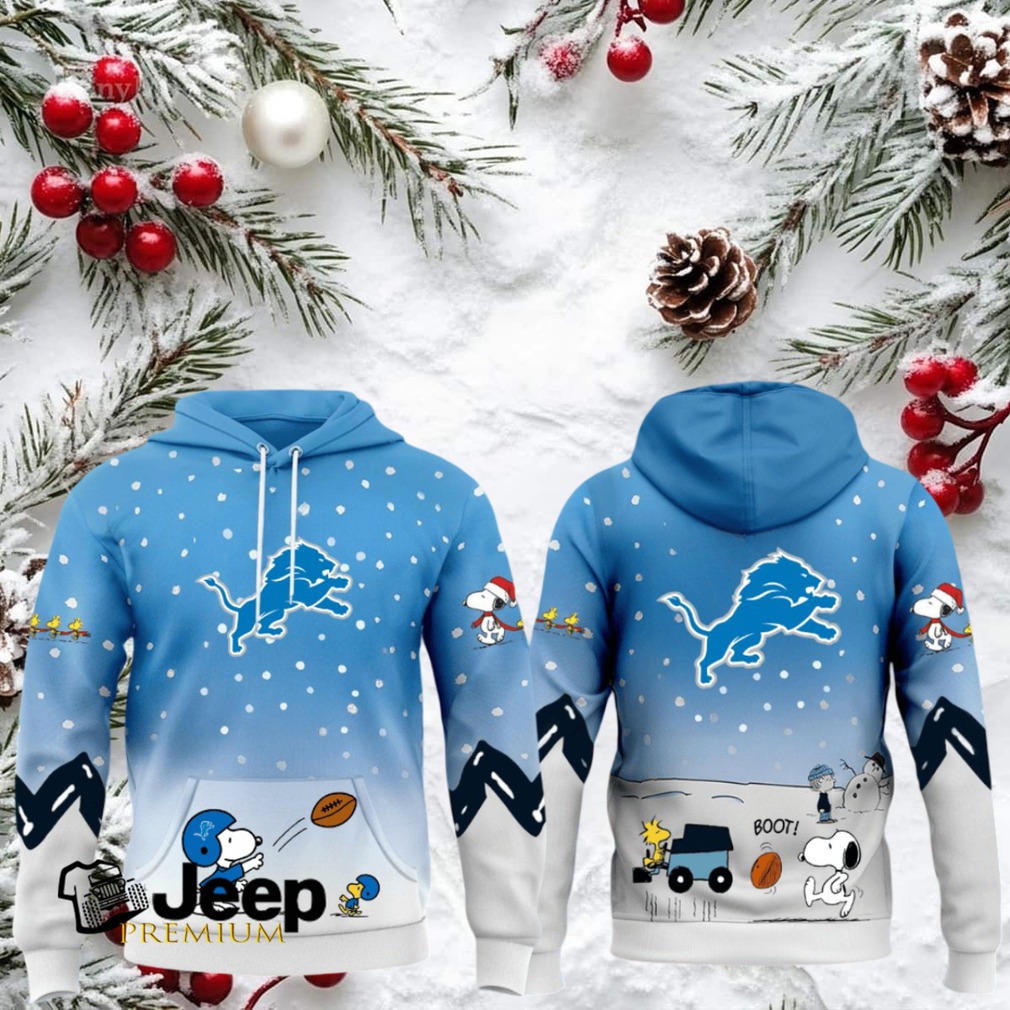 Imagine a cozy winter scene where your favorite football team, the Detroit Lions, are celebrated alongside the timeless charm of Snoopy and Woodstock. The Detroit Lions x Peanuts Snoopy & Woodstock Winter Theme Hoodie brings this vision to life, offering a unique blend of fandom and festive cheer. This isn’t just a hoodie; it’s a heartwarming tribute to your team and beloved characters, perfect for staying warm while showing your unwavering support during the colder months.