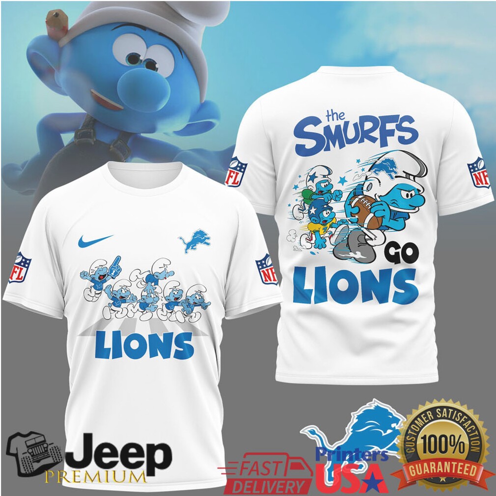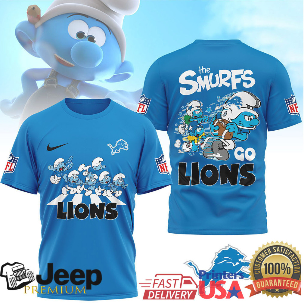 ()Detroit Lions x The Smurfs Football Crossover NFL Fan T Shirt, Treat yourself or make a great gift for your loved ones