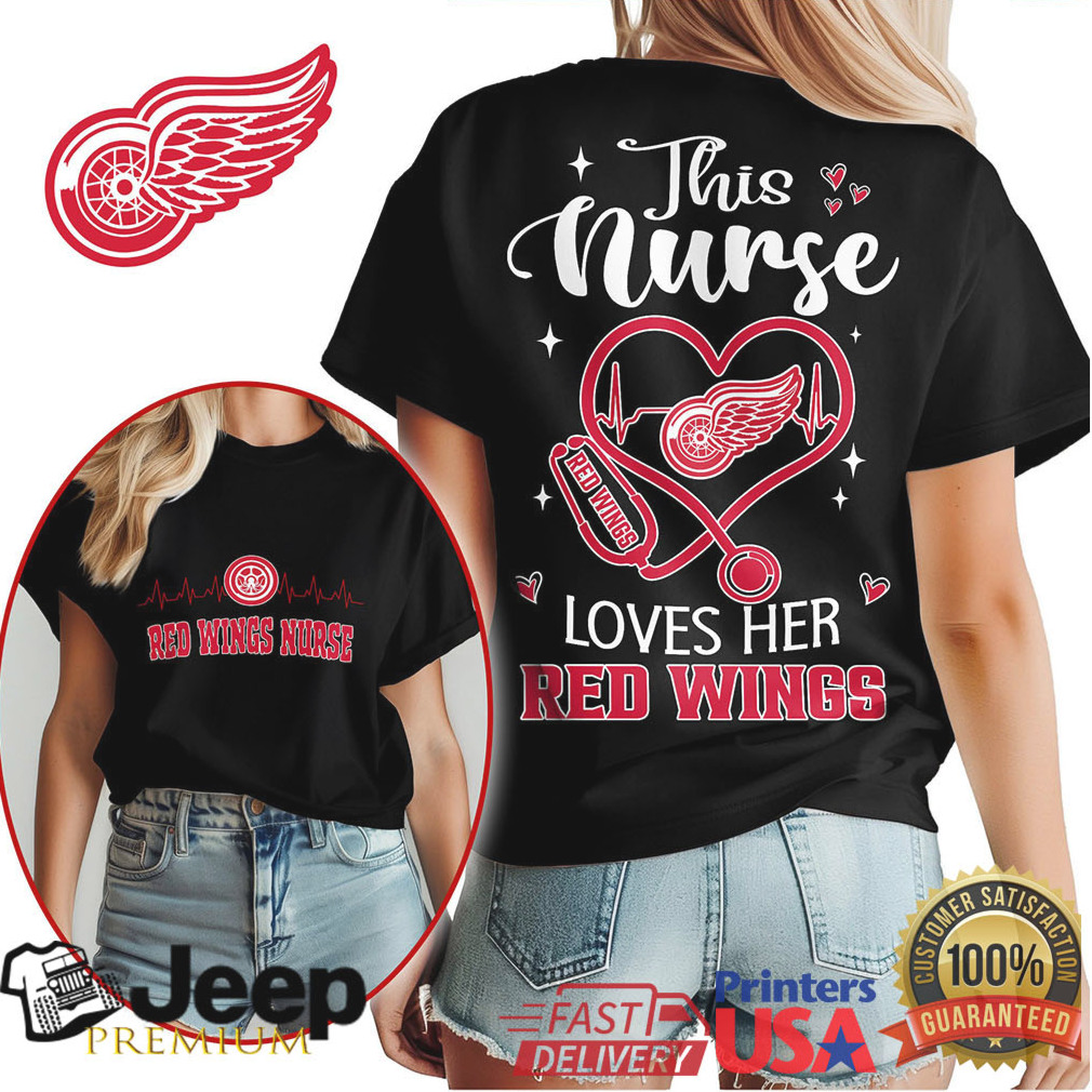 ()Detroit Red Wings Nurse Shirt NHL This Nurse Loves Her Red Wings Heart Stethoscope T Shirt, Treat yourself or make a great gift for your loved ones