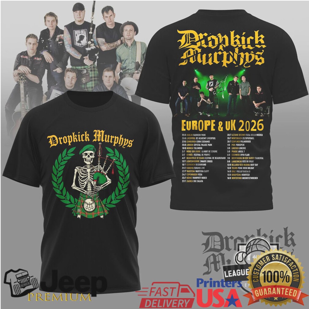 👕 About Dropkick Murphys Europe & UK Tour 2026 Skeleton Bagpipes T Shirt