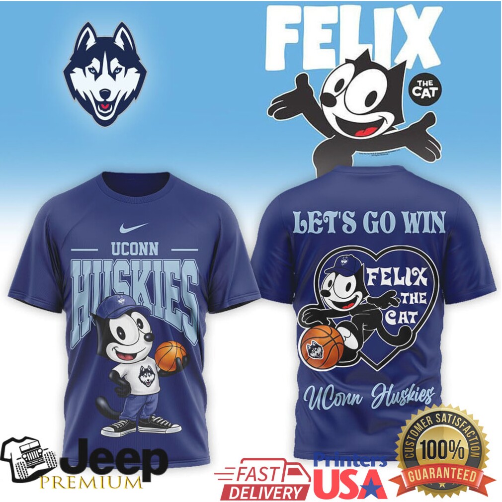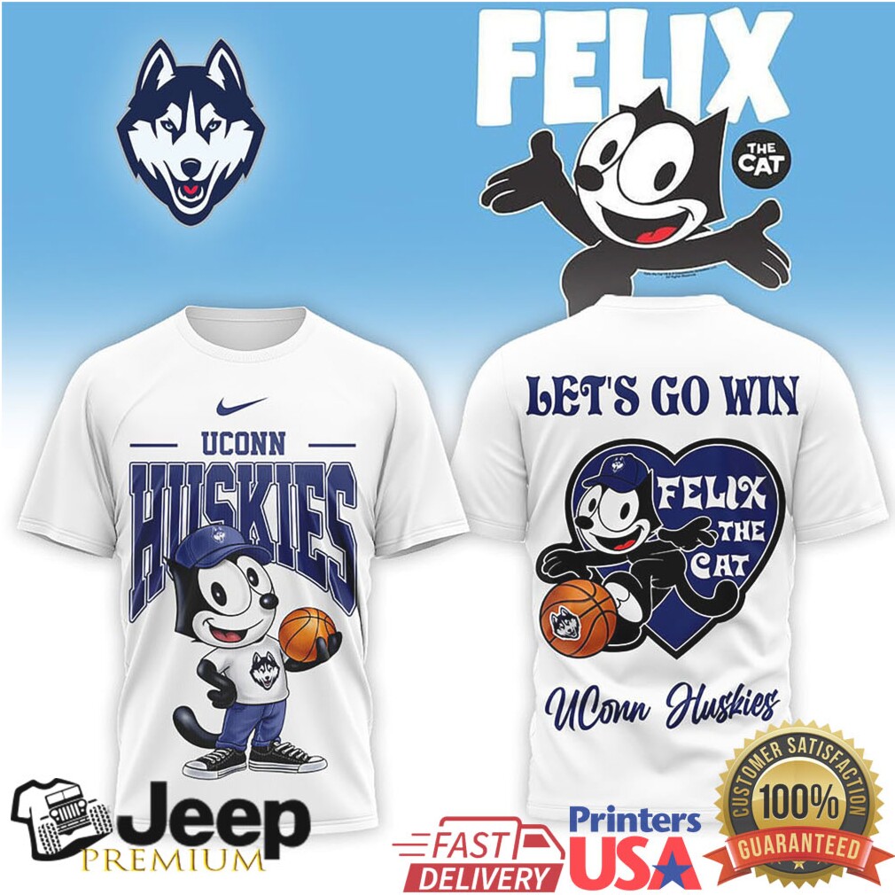 👕 About Felix the Cat UConn Huskies “Let's Go Win” Basketball T Shirt