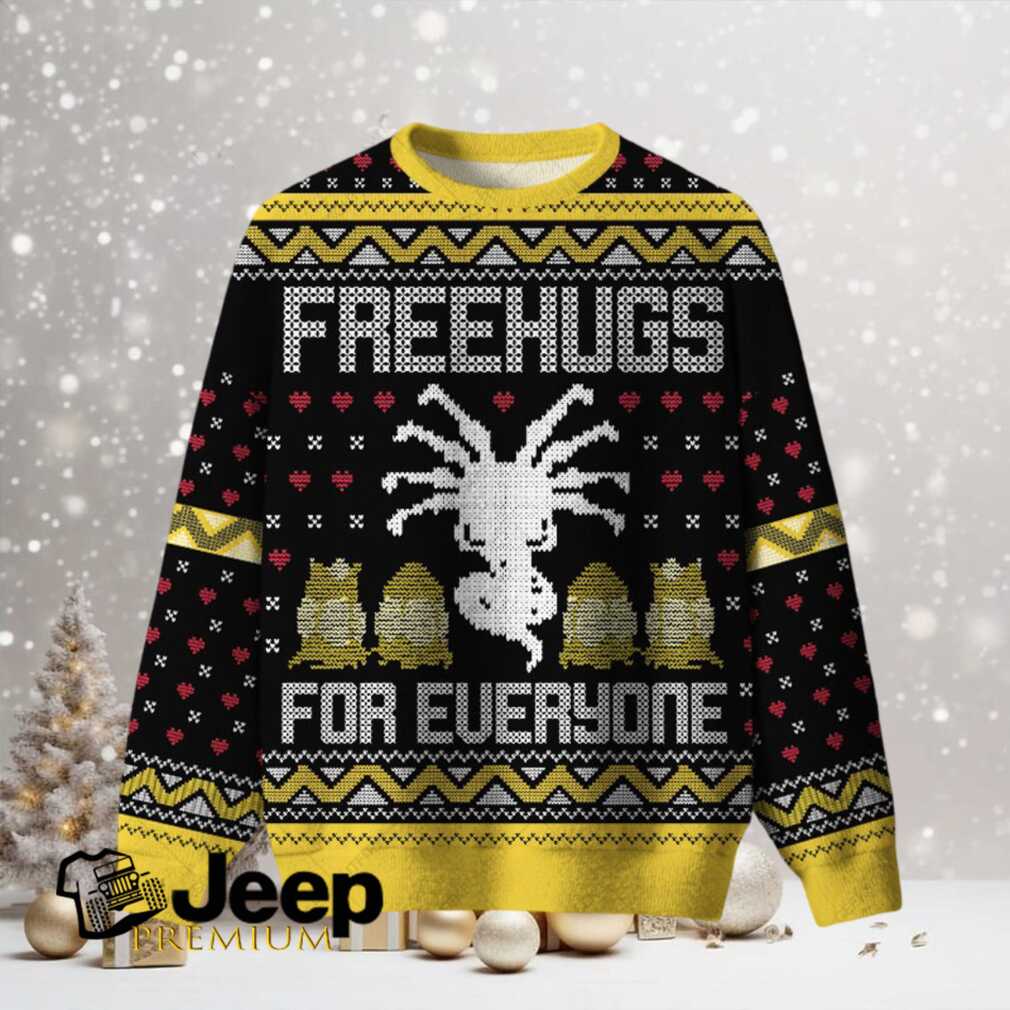 👕 About Free Hugs For Everyone Ugly Christmas Fuzzy Fleece Sweatshirt