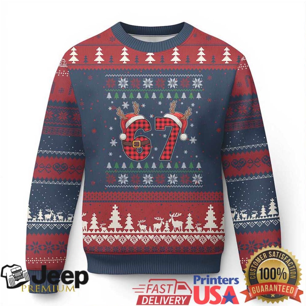 Dive headfirst into the abyss of internet humor with this Funny 67 Six Seven Meme Brainrot Cringe Xmas Plaid Graphic Ugly Christmas Sweater! This sweater is so bad, it’s good – a perfect storm of cringe and irony that’s guaranteed to get a reaction at any holiday gathering. If you’re fluent in meme speak and thrive on awkwardness, this is the Christmas sweater you’ve been waiting for. Prepare for maximum brainrot!