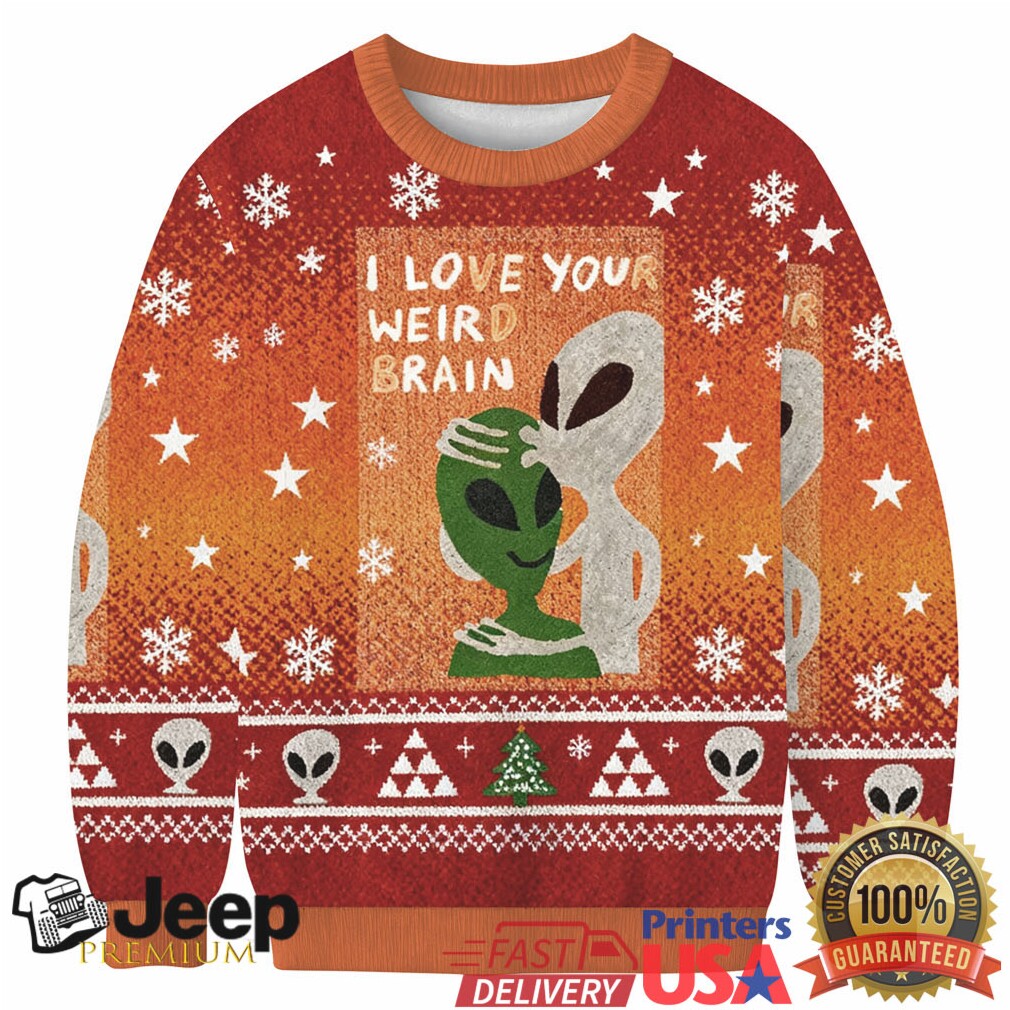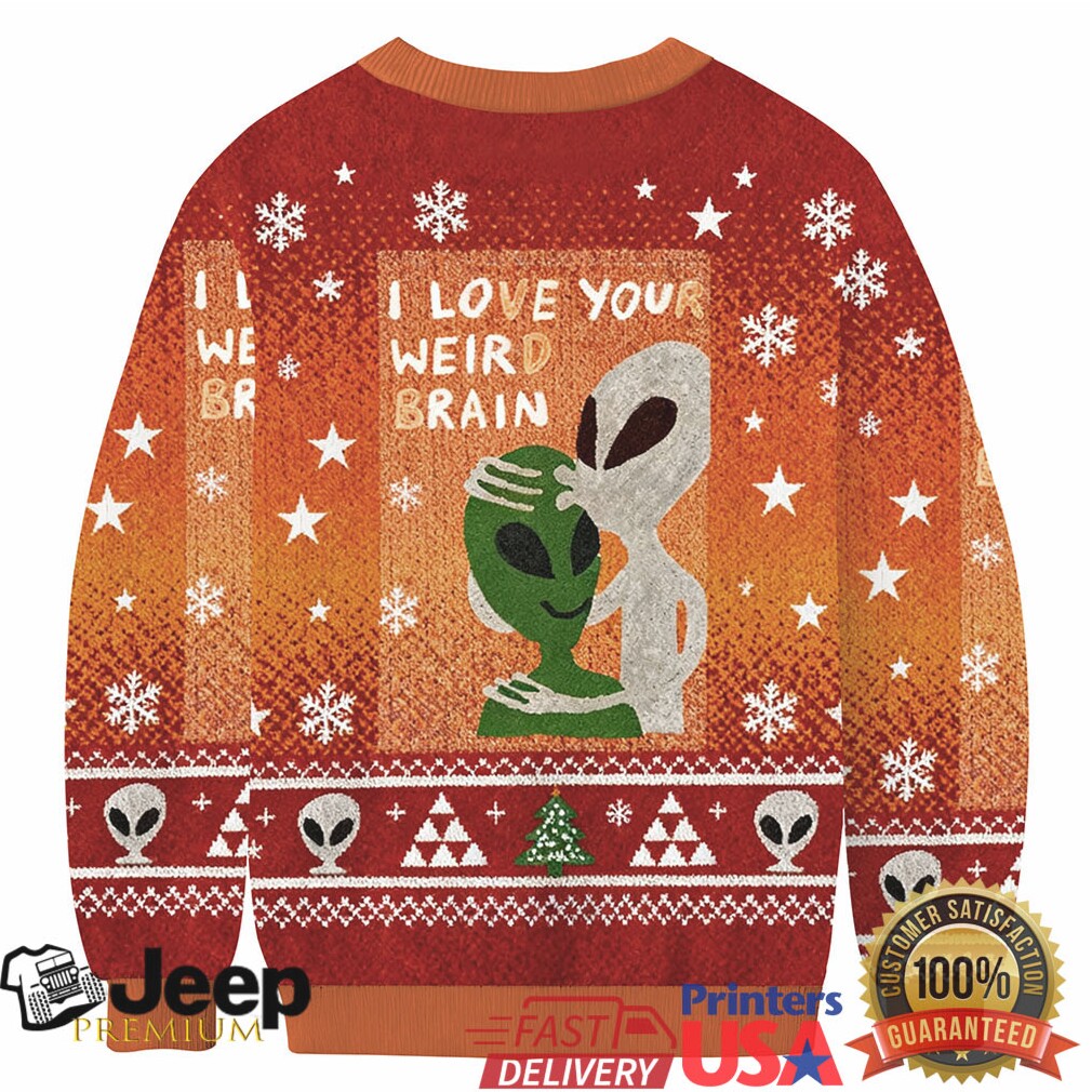 👕 About Funny Aliens I Love Your Weird Brain Christmas Ugly Sweatshirt