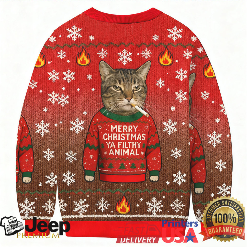 What Makes This Funny Christmas Smoking Cat Christmas Ugly Sweatshirt Epic