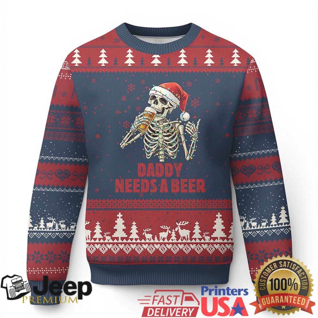 👕 About Funny Skeleton Beer Xmas Ugly Christmas Sweater Daddy Needs A Beer