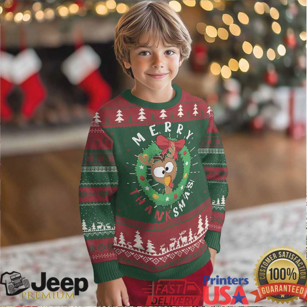 Be the first to review “Funny Thanksgiving Xmas Ugly Christmas Sweater Merry Thanksmas Turkey Reindeer Antler” Cancel reply