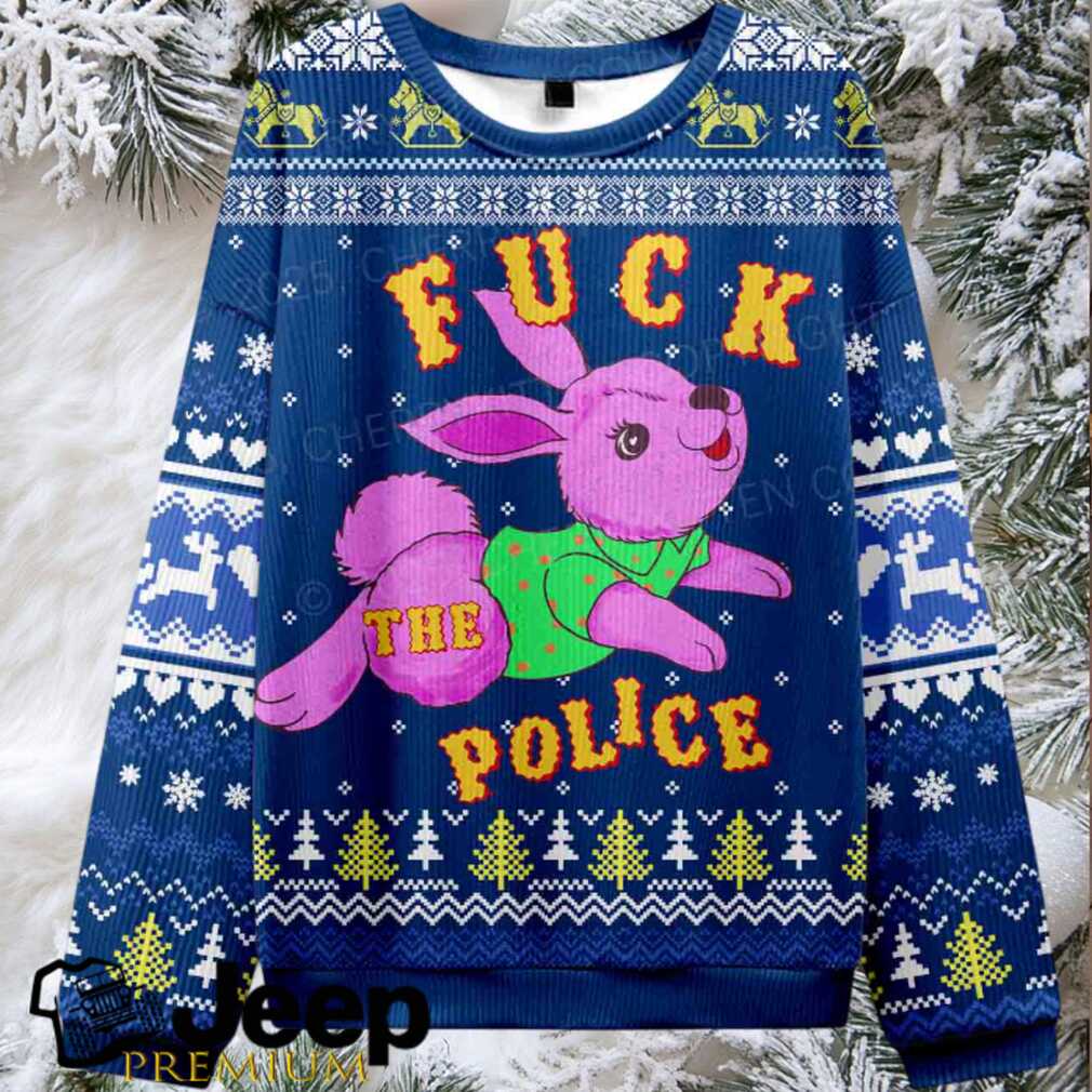 Who Rocks This Best With Fxxk The Police Bunny Christmas Knit Sweatshirt