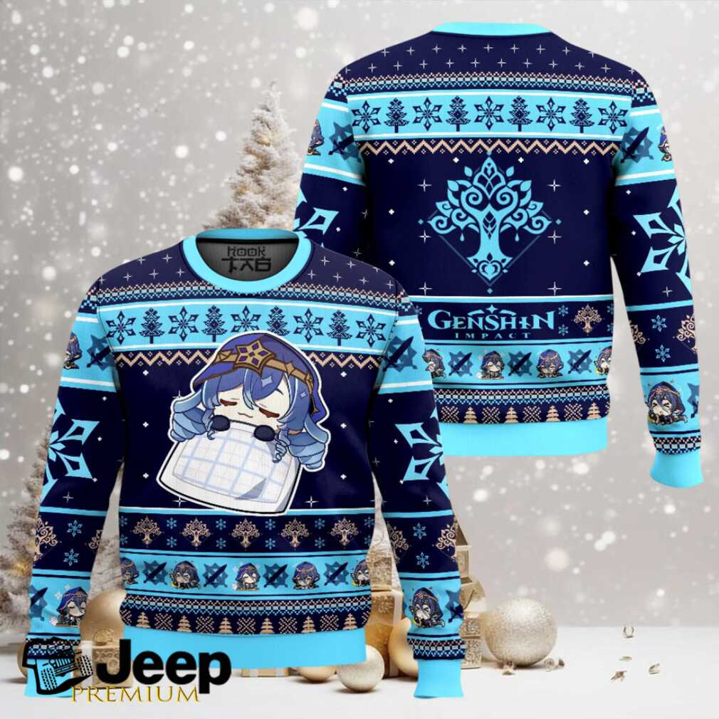 Imagine unwinding after a long day of adventuring in Teyvat, perhaps with Layla, the sleepy but brilliant Akademiya student, by your side. Now, bring that serene yet festive vibe to your holiday celebrations! This Genshin Impact Layla Ugly Christmas Sweater is perfect for any traveler who wants to embrace the winter season with their favorite Cryo user. It’s a cozy way to show off your love for Genshin Impact, whether you’re studying ancient texts or enjoying a winter festival.