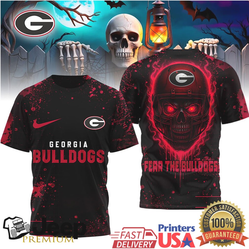(Georgia Bulldogs Football Fear The Bulldogs Skull Halloween 3D T Shirt)Georgia Bulldogs Football Fear The Bulldogs Skull Halloween 3D T Shirt, Treat yourself or make a great gift for your loved ones