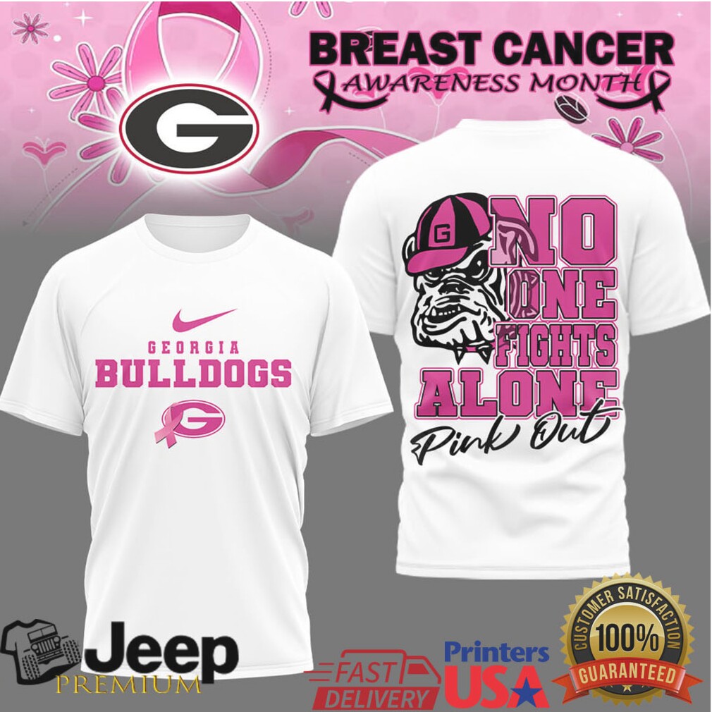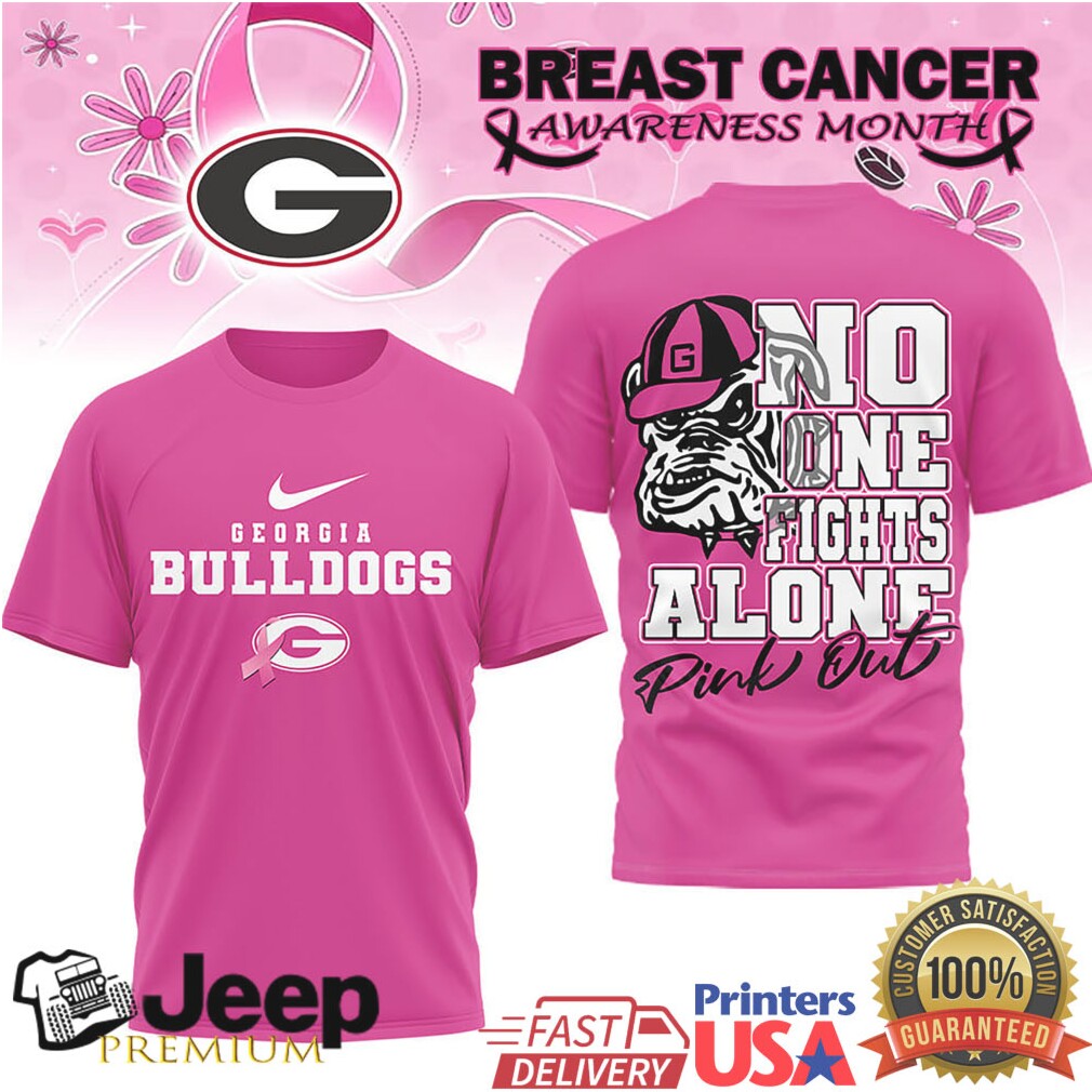 ()Georgia Bulldogs No One Fights Alone Breast Cancer Awareness Pink Out T Shirt, Treat yourself or make a great gift for your loved ones