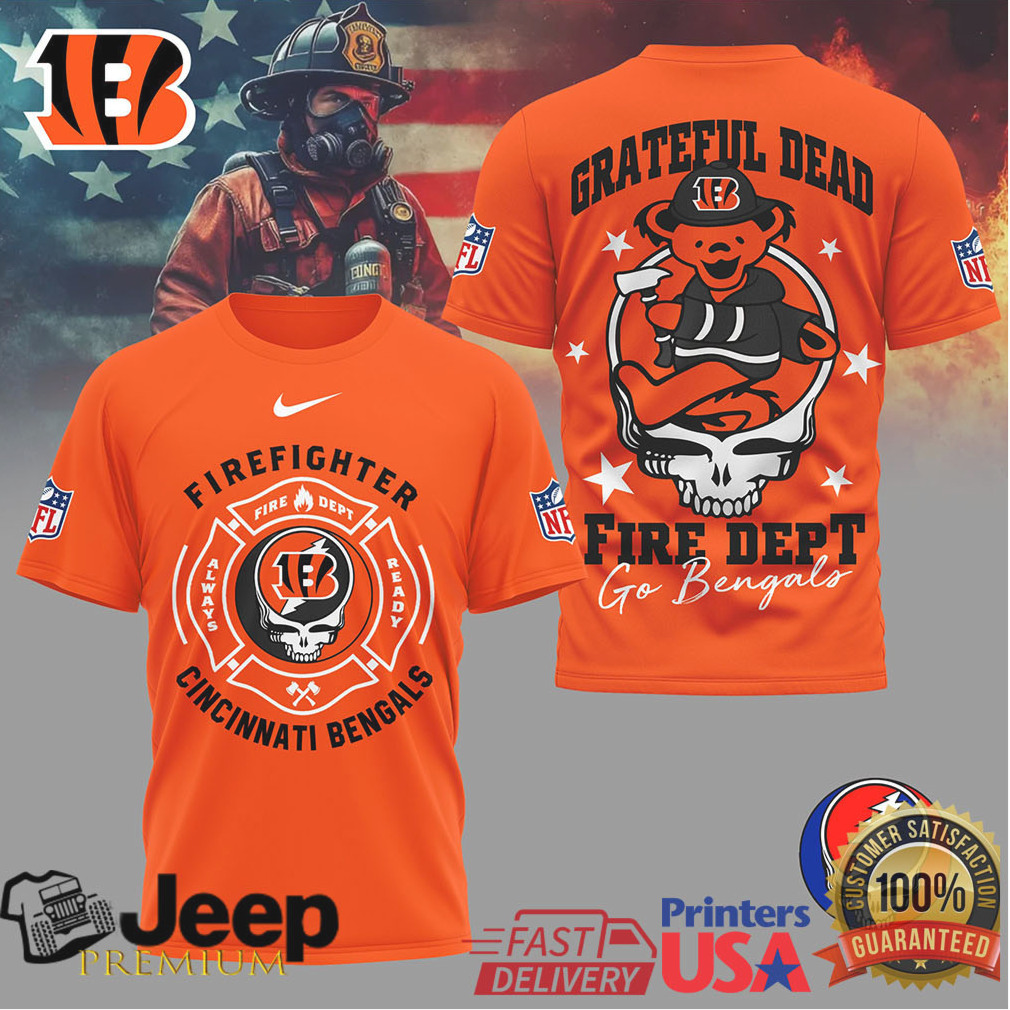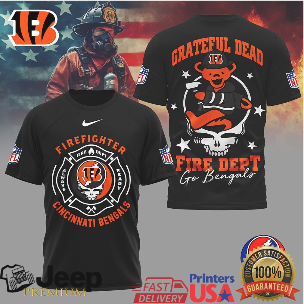 ()Grateful Dead Cincinnati Bengals Firefighter Fire Dept Dancing Bear T Shirt, Treat yourself or make a great gift for your loved ones