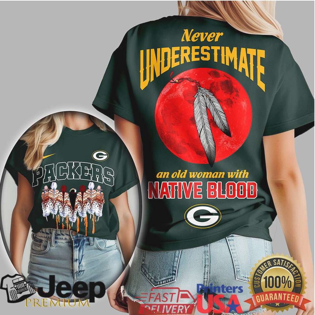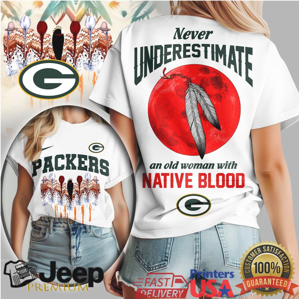 (Green Bay Packers Never Underestimate An Old Woman With Native Blood T Shirt)Green Bay Packers Never Underestimate An Old Woman With Native Blood T Shirt, Treat yourself or make a great gift for your loved ones