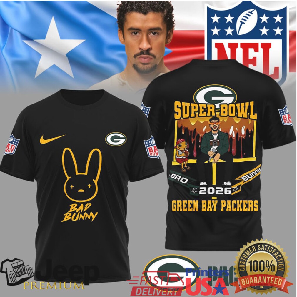 ()Green Bay Packers Official NFL Bad Bunny Super Bowl 3D Shirt, Treat yourself or make a great gift for your loved ones