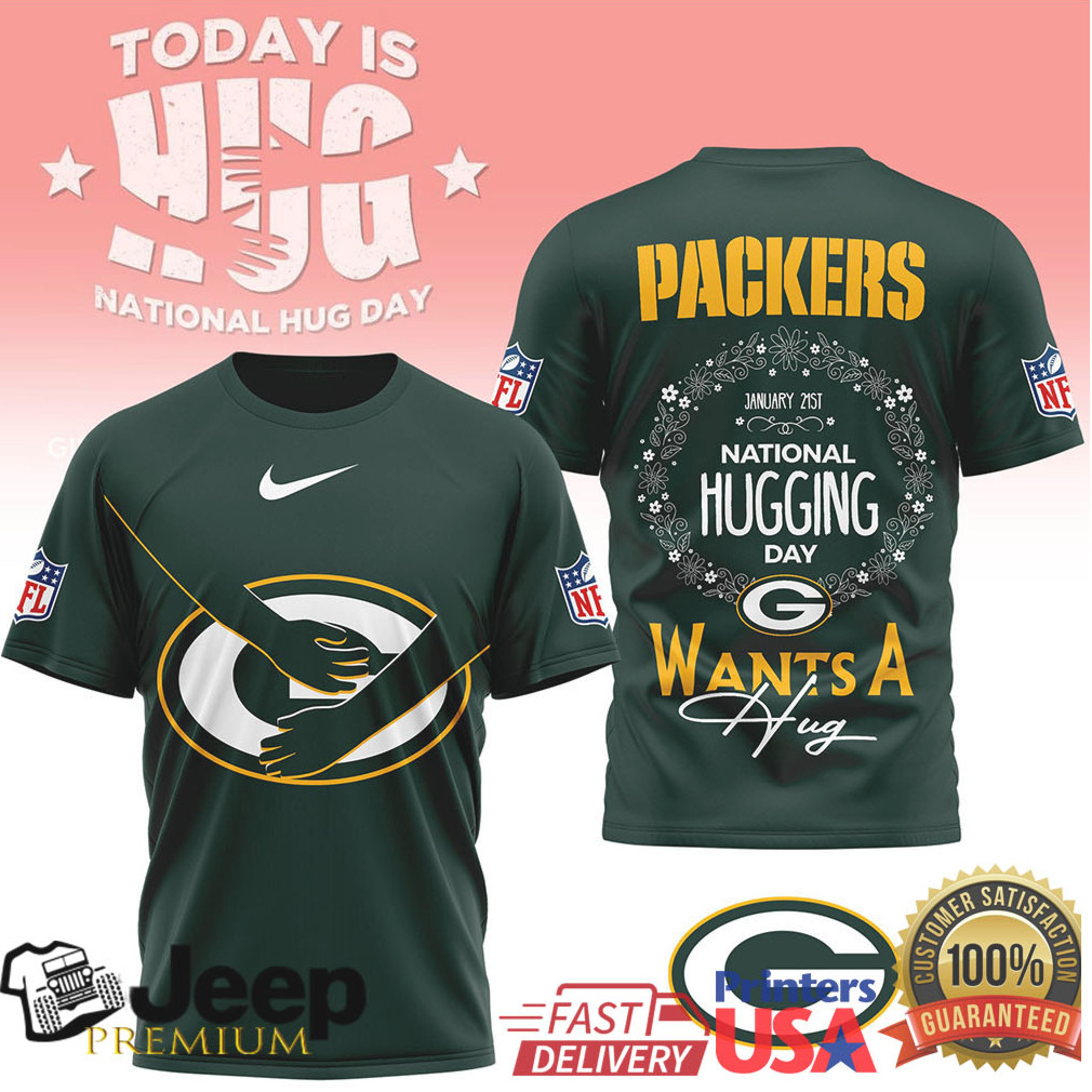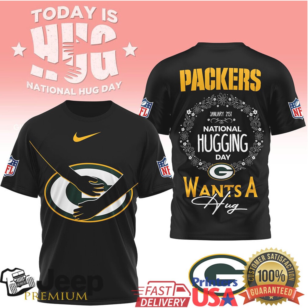 ()Green Bay Packers Official NFL National Hugging Day 3D Shirt, Treat yourself or make a great gift for your loved ones