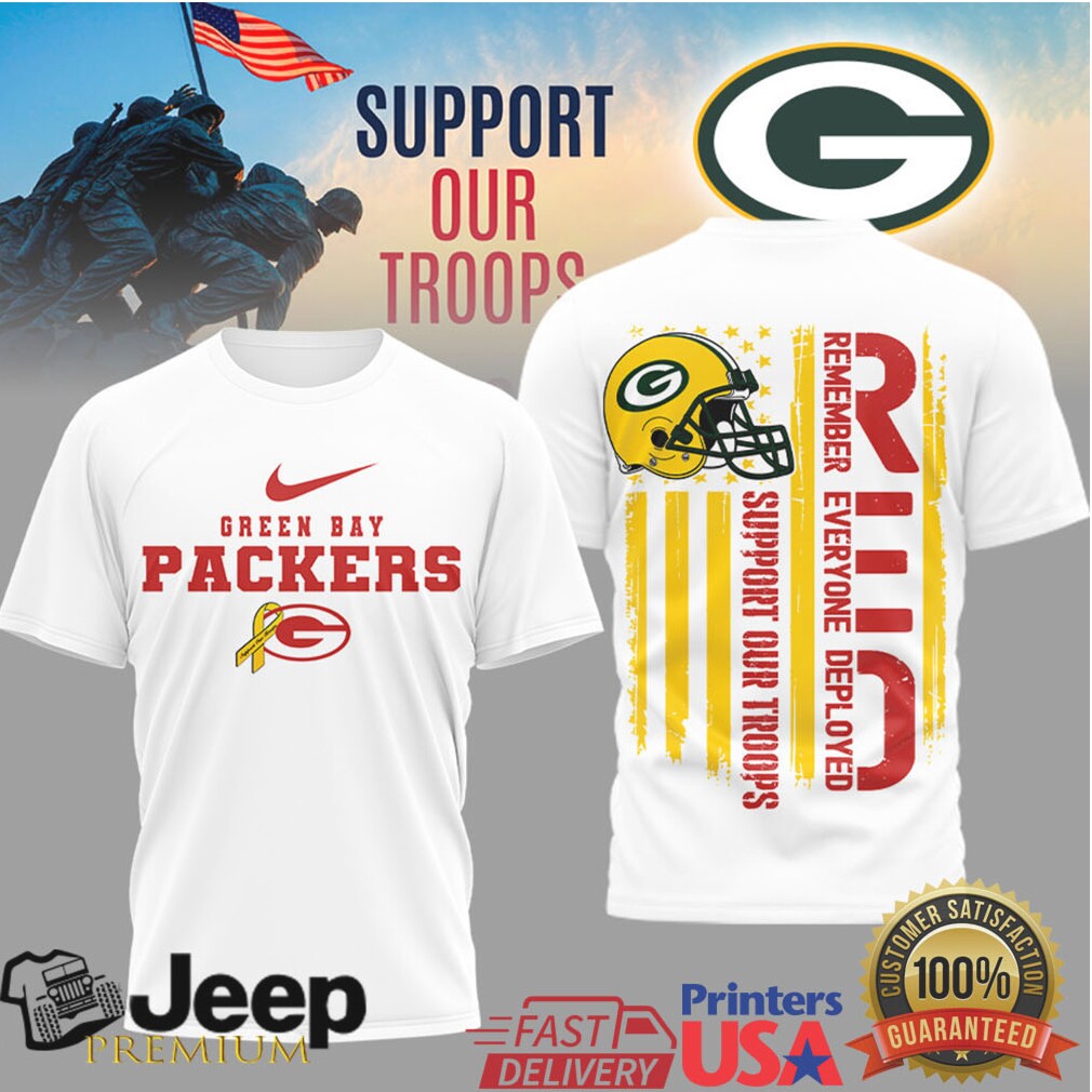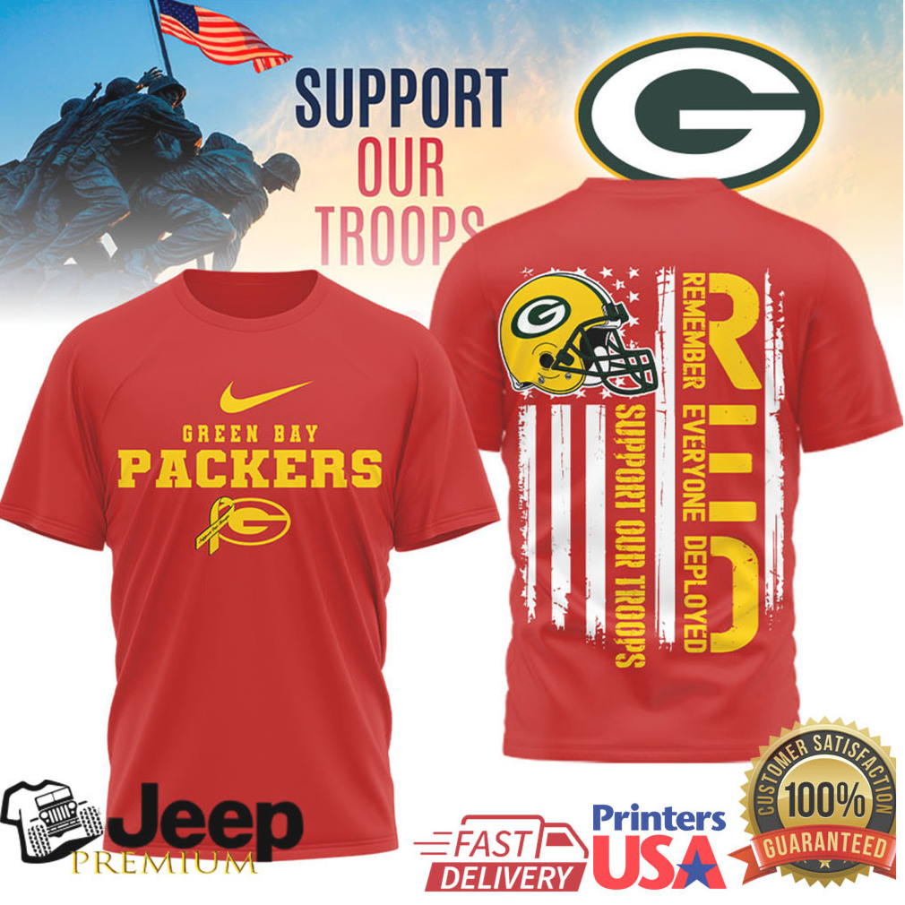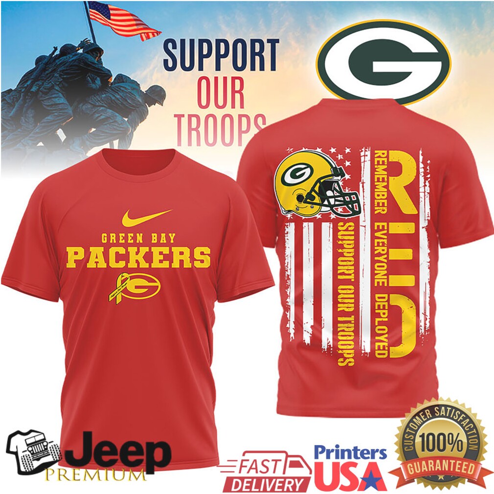 👕 About Green Bay Packers RED Support Our Troops Military Appreciation T Shirt