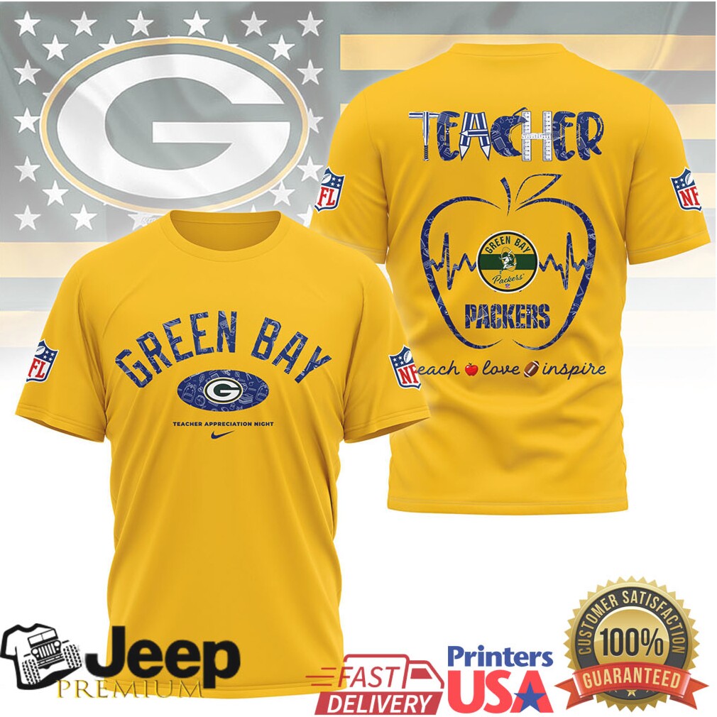 (Green Bay Packers Teacher Appreciation Night Teach Love Inspire Tshirt)Green Bay Packers Teacher Appreciation Night Teach Love Inspire Tshirt, Treat yourself or make a great gift for your loved ones