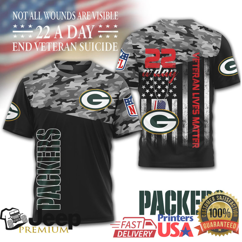 (Green Bay Packers Veteran Awareness T Shirt 22 A Day End Veteran Suicide Camo)