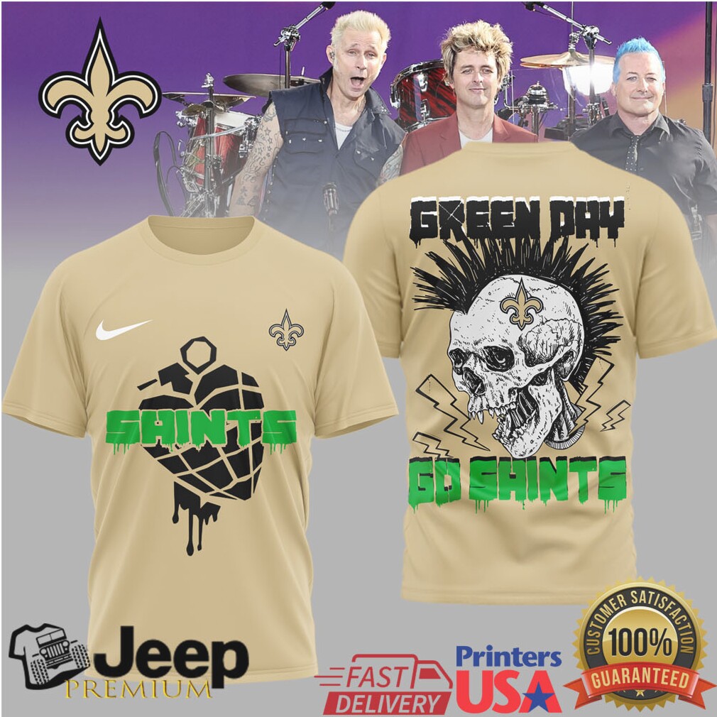 Punk rock meets pigskin! This radical Green Day x New Orleans Saints mashup tee is the ultimate crossover for fans who love hard-hitting music and hard-hitting football. Featuring punk-inspired skull, heart, and grenade artwork blended with New Orleans Saints team colors, this shirt screams attitude. Rock it on game day or any day — because true fans never go out of style.