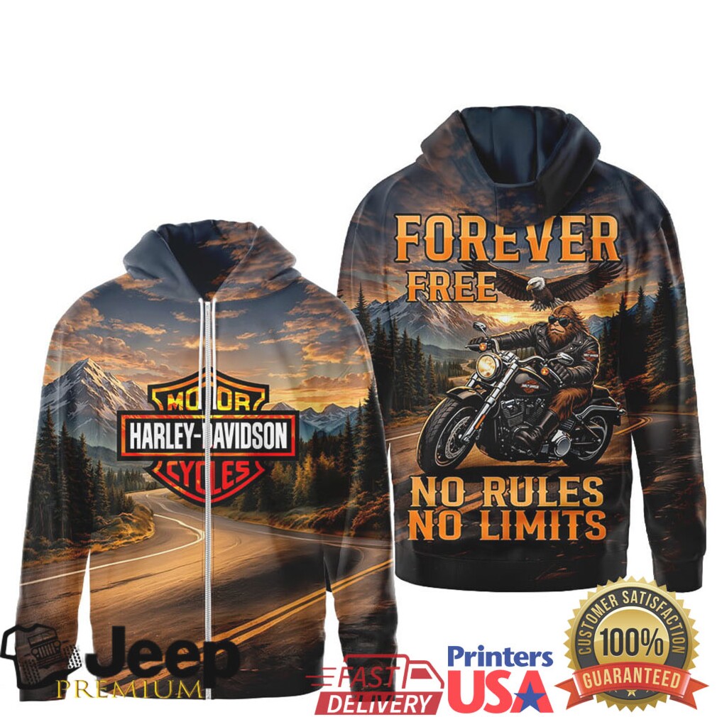 👕 About Harley Davidson Forever Free Bigfoot Motorcycle Rider All Over Print