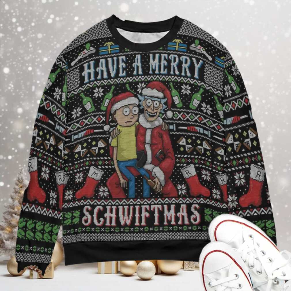 This “Have A Merry Schwiftmas Ugly Christmas Sweatshirt” isn’t just another holiday jumper; it’s a bold statement that combines your favorite animated sci-fi duo with the spirit of Christmas. Crafted from a soft, comfortable cotton blend, this sweatshirt is designed to keep you warm and cozy through all your holiday adventures, whether you’re attending an ugly Christmas sweater party or having a cozy night in. The eye-catching design features classic Rick and Morty elements with a festive twist, ensuring you stand out in the best possible way. It’s an ideal piece for those who appreciate unique apparel that reflects their personality and fandom.