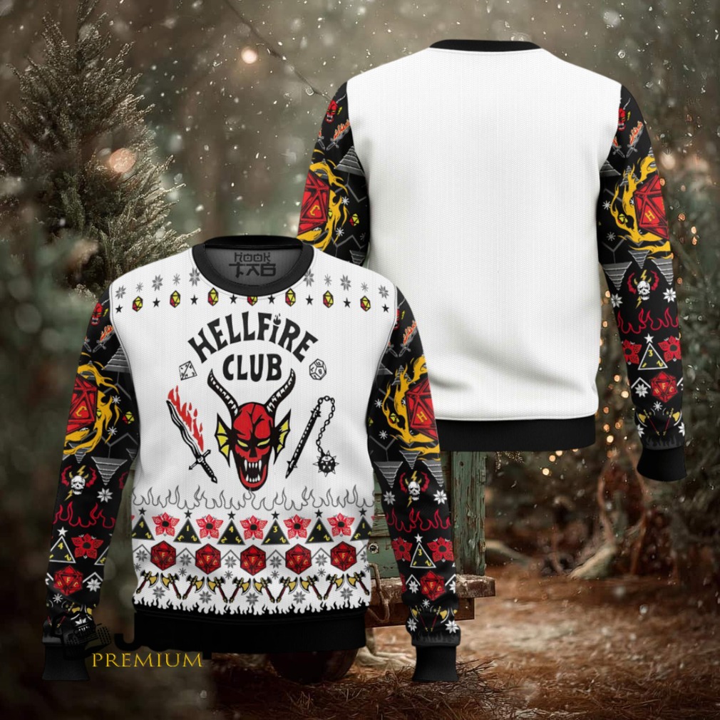 Roll for initiative this holiday season with the Hellfire Club Dice Stranger Things Ugly Christmas Sweater! Perfect for Stranger Things and Dungeons & Dragons enthusiasts alike, this sweater merges the iconic imagery of the Hellfire Club with festive cheer. Imagine rocking this at your next Christmas party or D&D session – it’s not just a sweater, it’s a declaration of your fandom! Get ready to level up your holiday wardrobe!