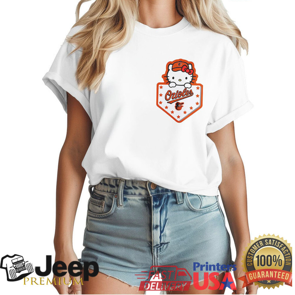 👕 About Hello Kitty Baltimore Orioles Small Bow Big Hit Baseball T Shirt
