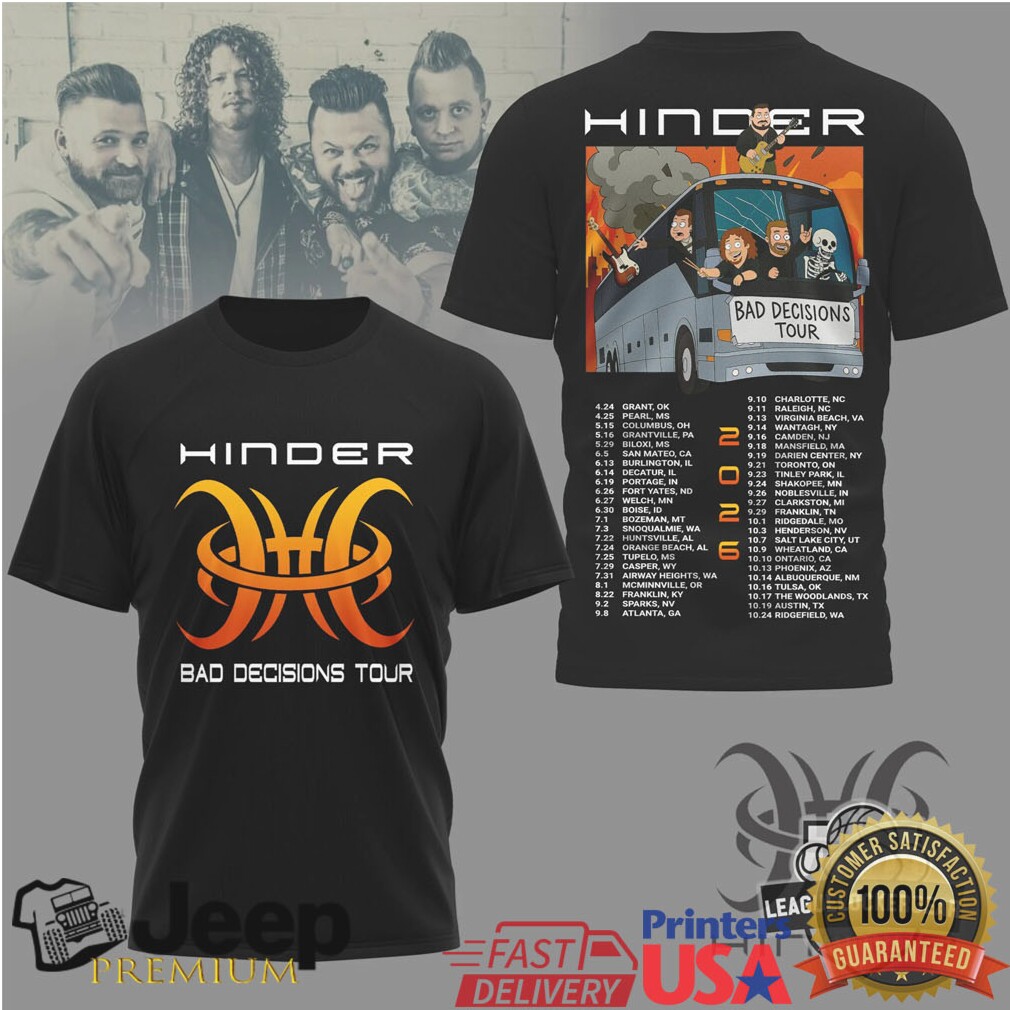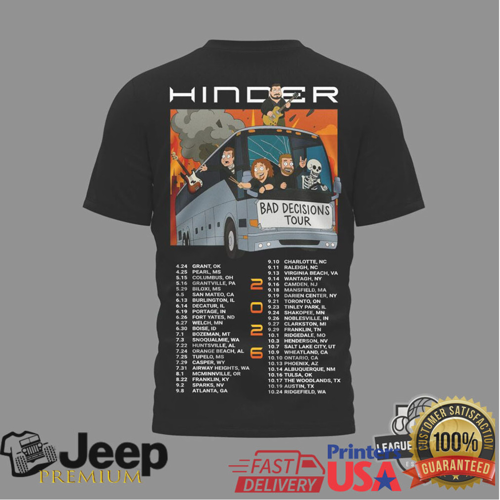 👕 About Hinder Bad Decisions Tour 2026 Cartoon Band Bus Graphic T Shirt