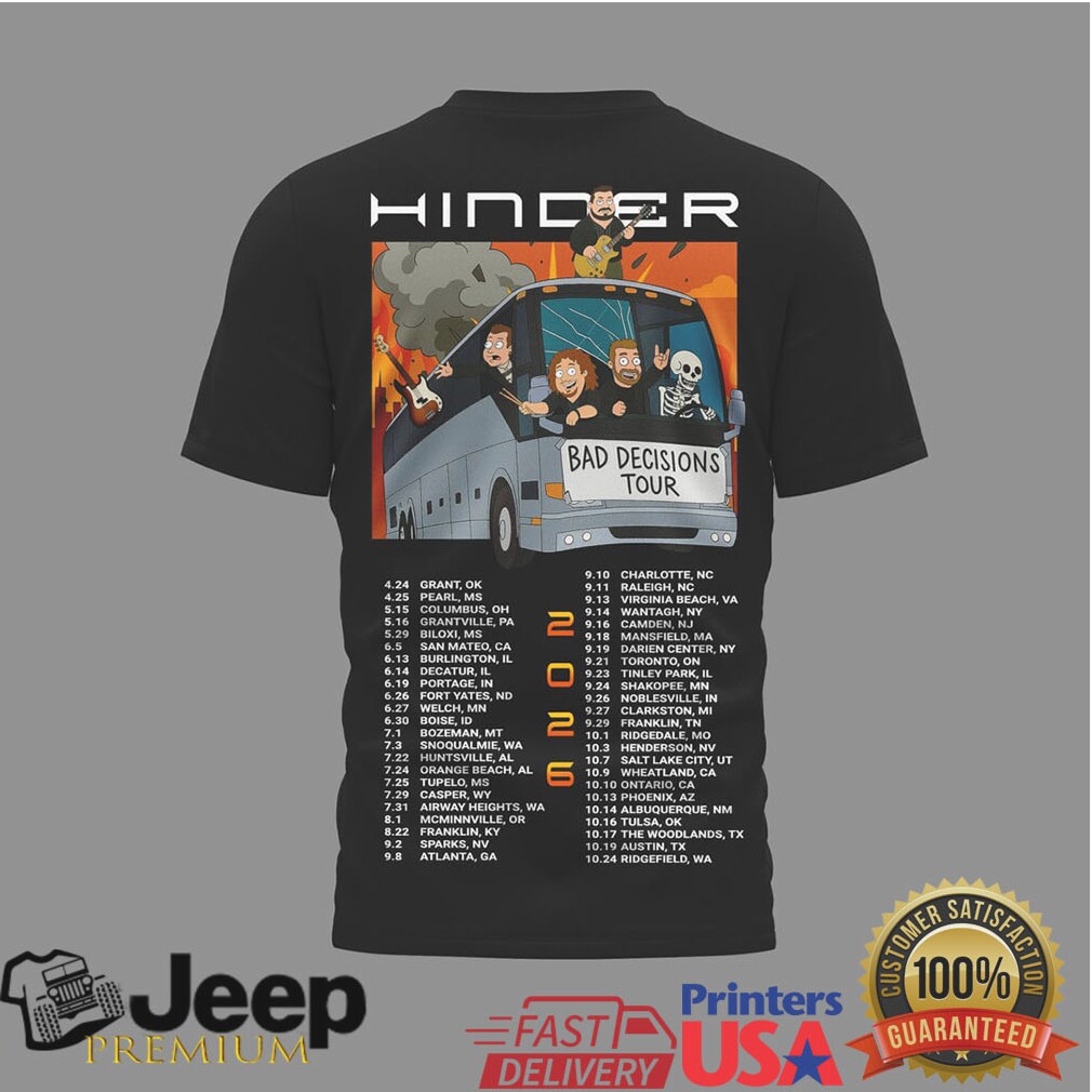 👕 About Hinder Bad Decisions Tour 2026 Cartoon Bus Graphic Rock T Shirt