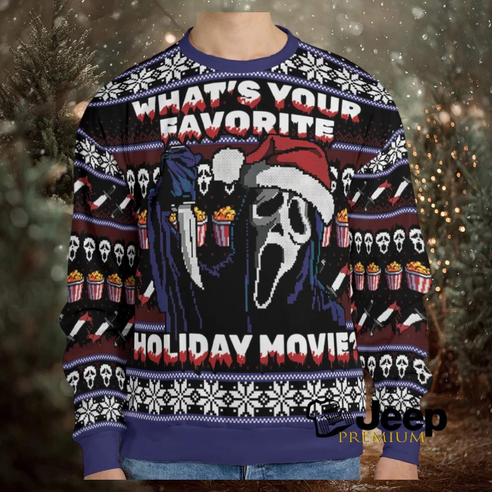 Remember those classic holiday movie nights, but with a twist? This isn’t your grandma’s cozy cardigan; it’s the Holiday Scream Ugly Christmas Sweatshirt, designed for those who prefer a little fright with their festive cheer. Imagine Ghostface getting into the holiday spirit, ready to carve up some fun at your next gathering. Perfect for horror enthusiasts and anyone tired of traditional holiday garb, this sweatshirt is a bold statement piece that guarantees laughs and maybe a few screams. Get ready to celebrate the season with a touch of slasher film nostalgia.