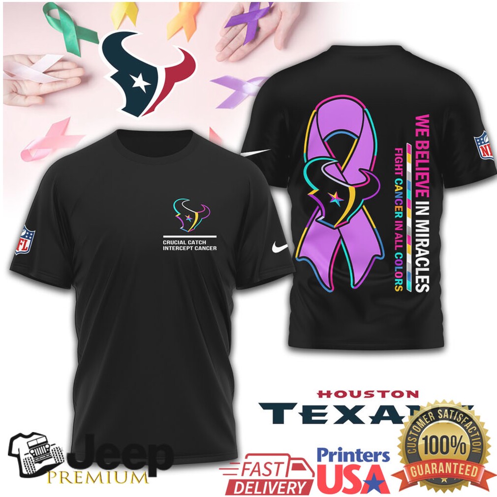 👕 About Houston Texans Crucial Catch Intercept Cancer Awareness Ribbon T Shirt