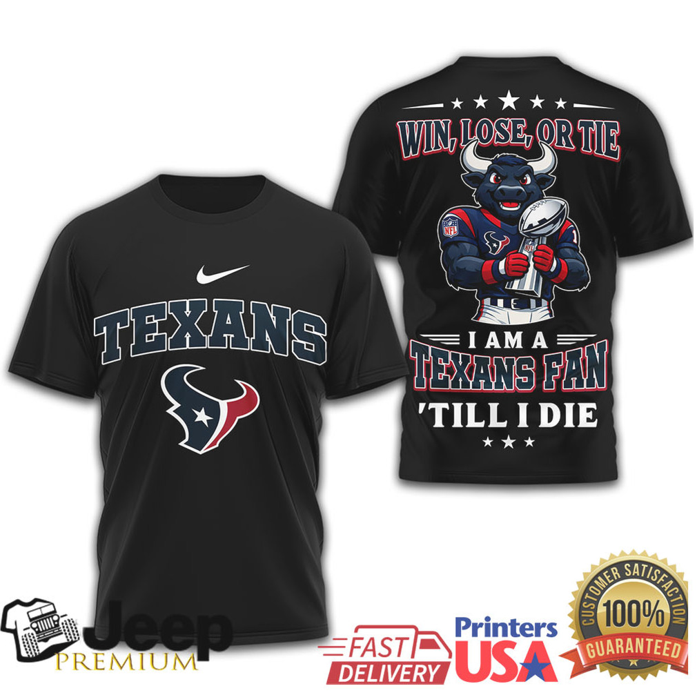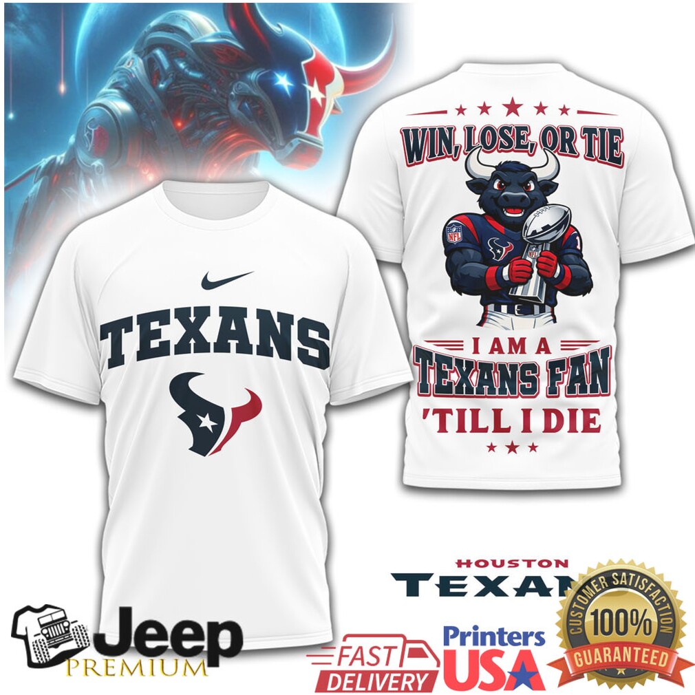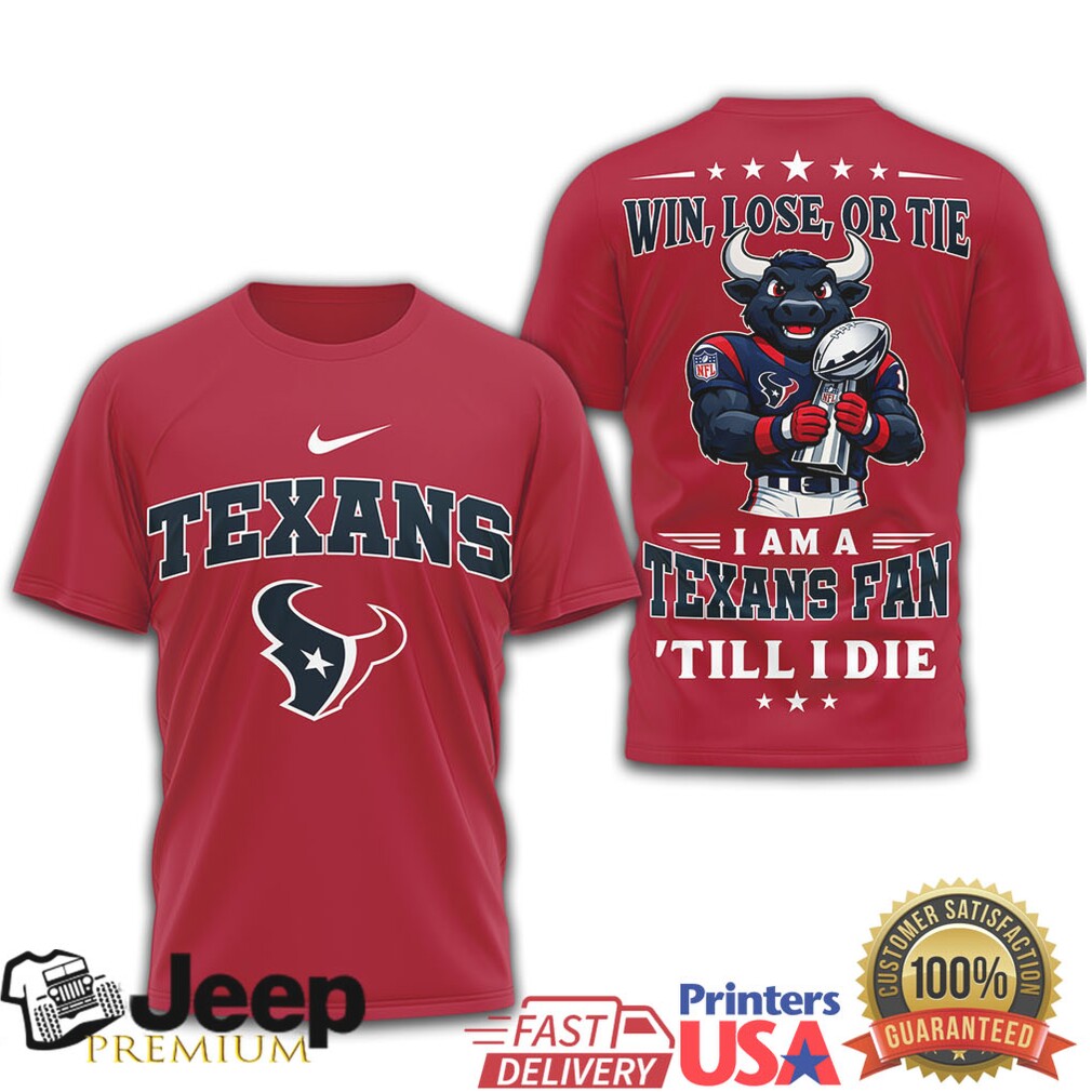 (Houston Texans Fan Till I Die Bull Mascot Trophy Graphic T Shirt)Houston Texans Fan Till I Die Bull Mascot Trophy Graphic T Shirt, Treat yourself or make a great gift for your loved ones
